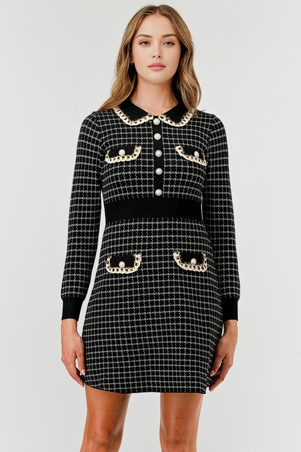 Ladies Turn-Down Collar Daily Short Knit Dress E2332