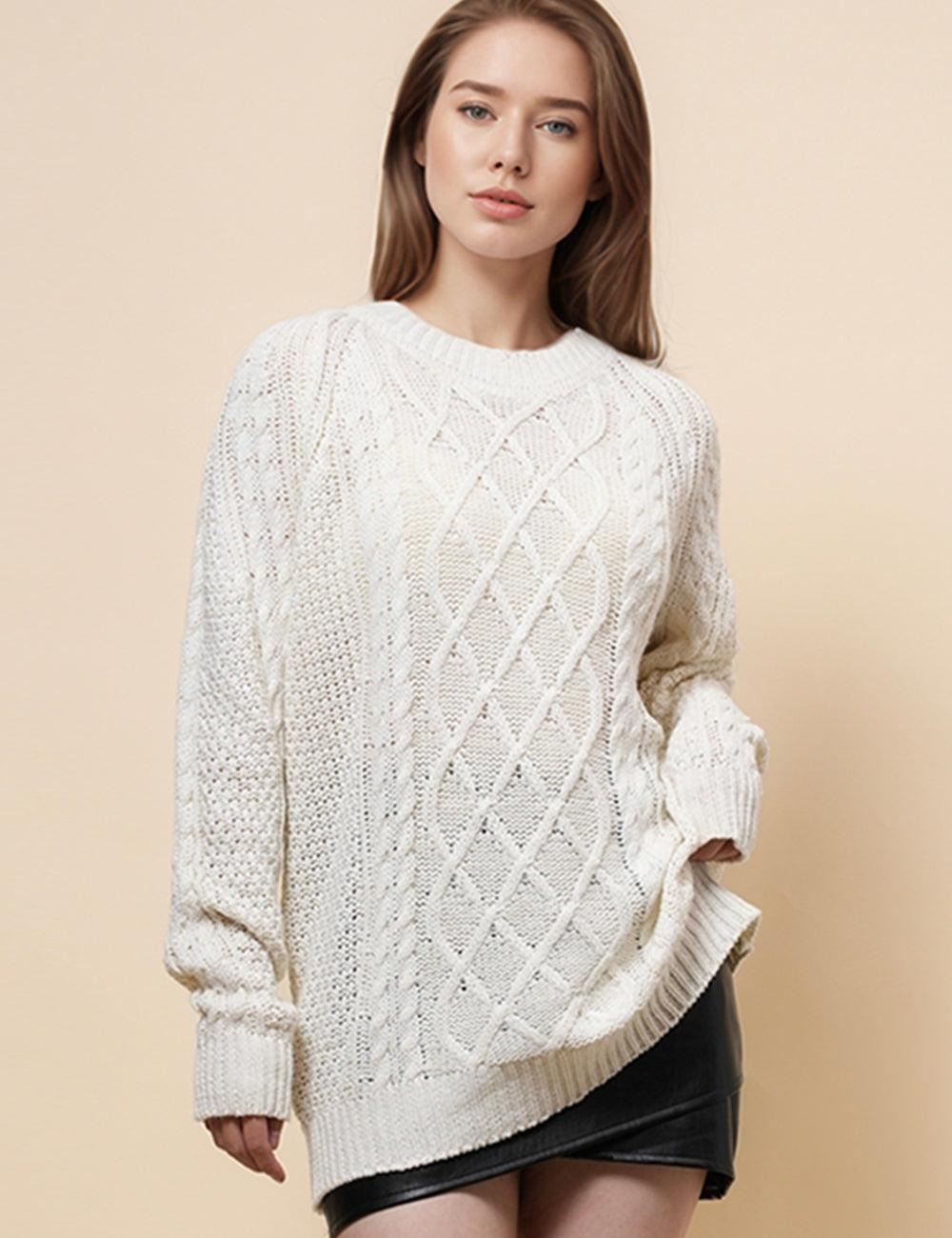 Ladies Cable Knit Mock Neck Sweather Tunic SKT4906