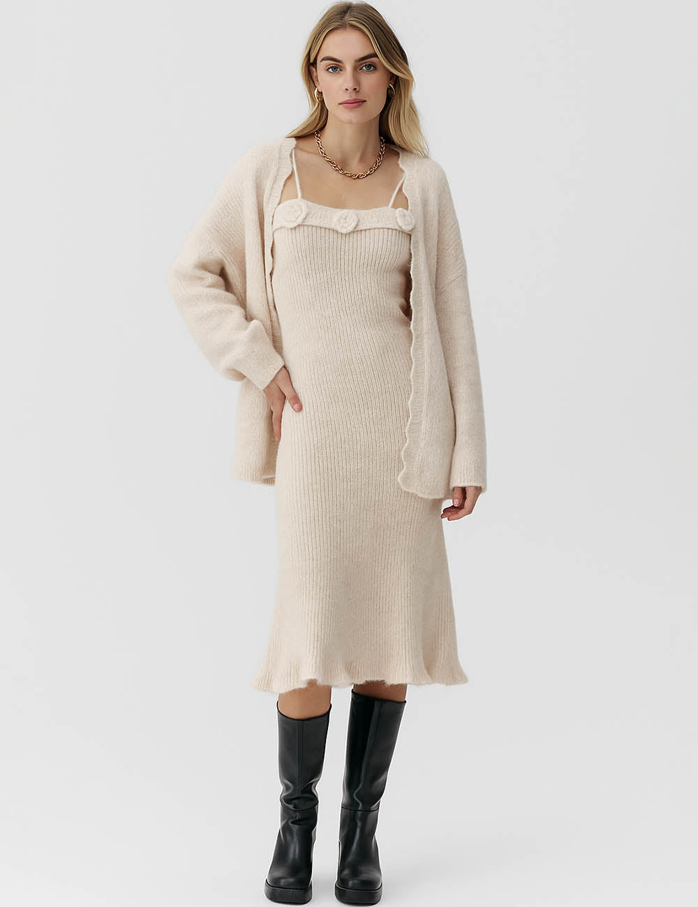 Ladies Solid Color 3PCS Knit Sweater Set 077