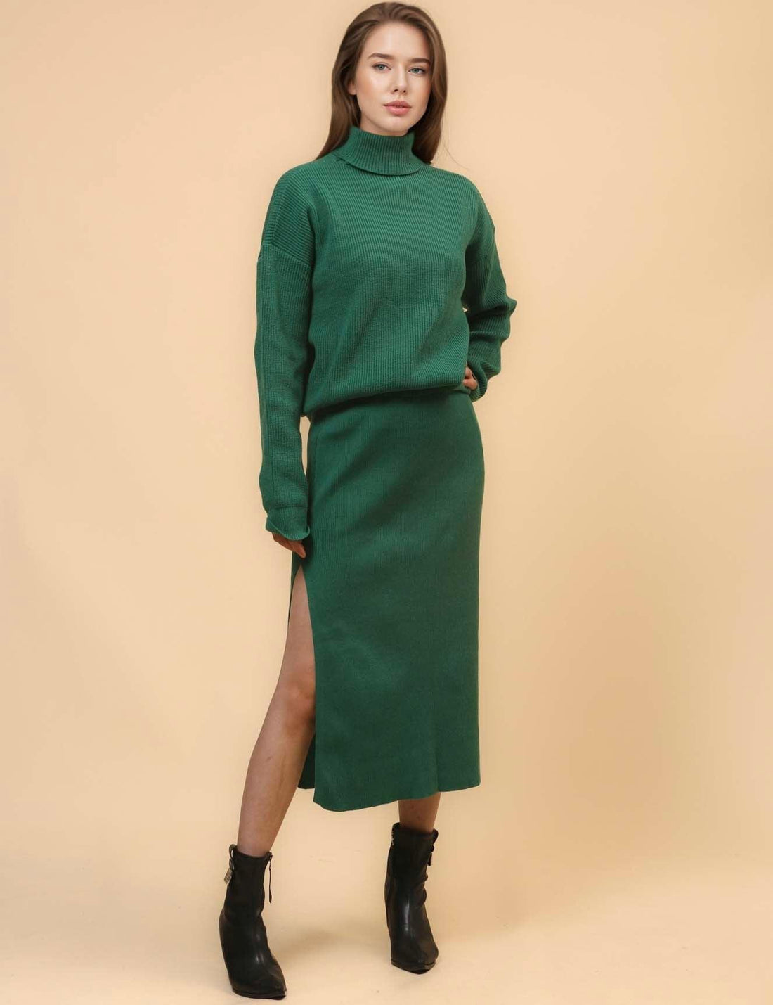 Ladies Turtleneck Pullover with Split Skirt Sweater Set SKST4706