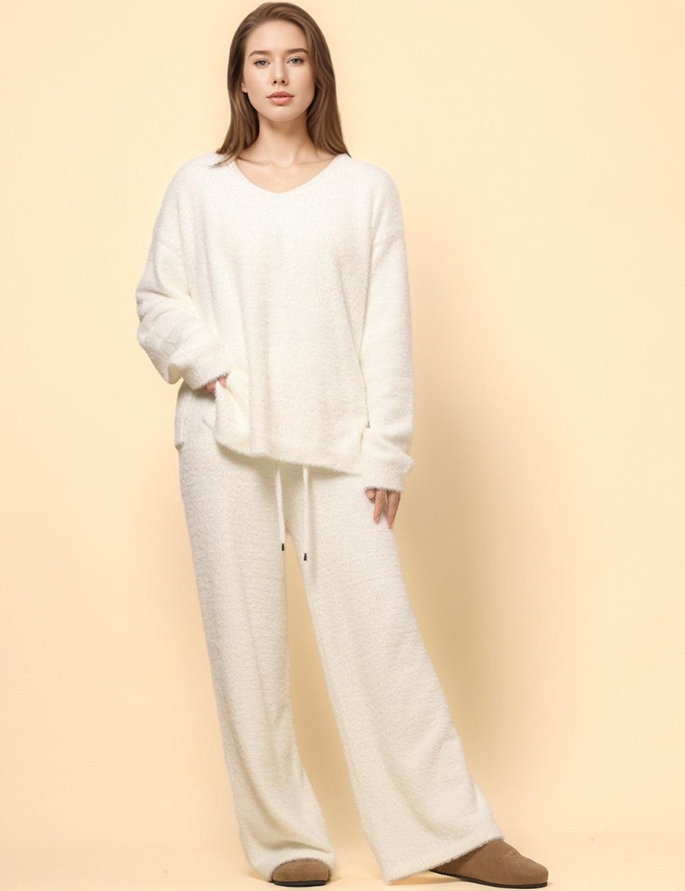 Ladies Soft Faux Mink Pullover Sweater Pants 2PCS Set SKST4742