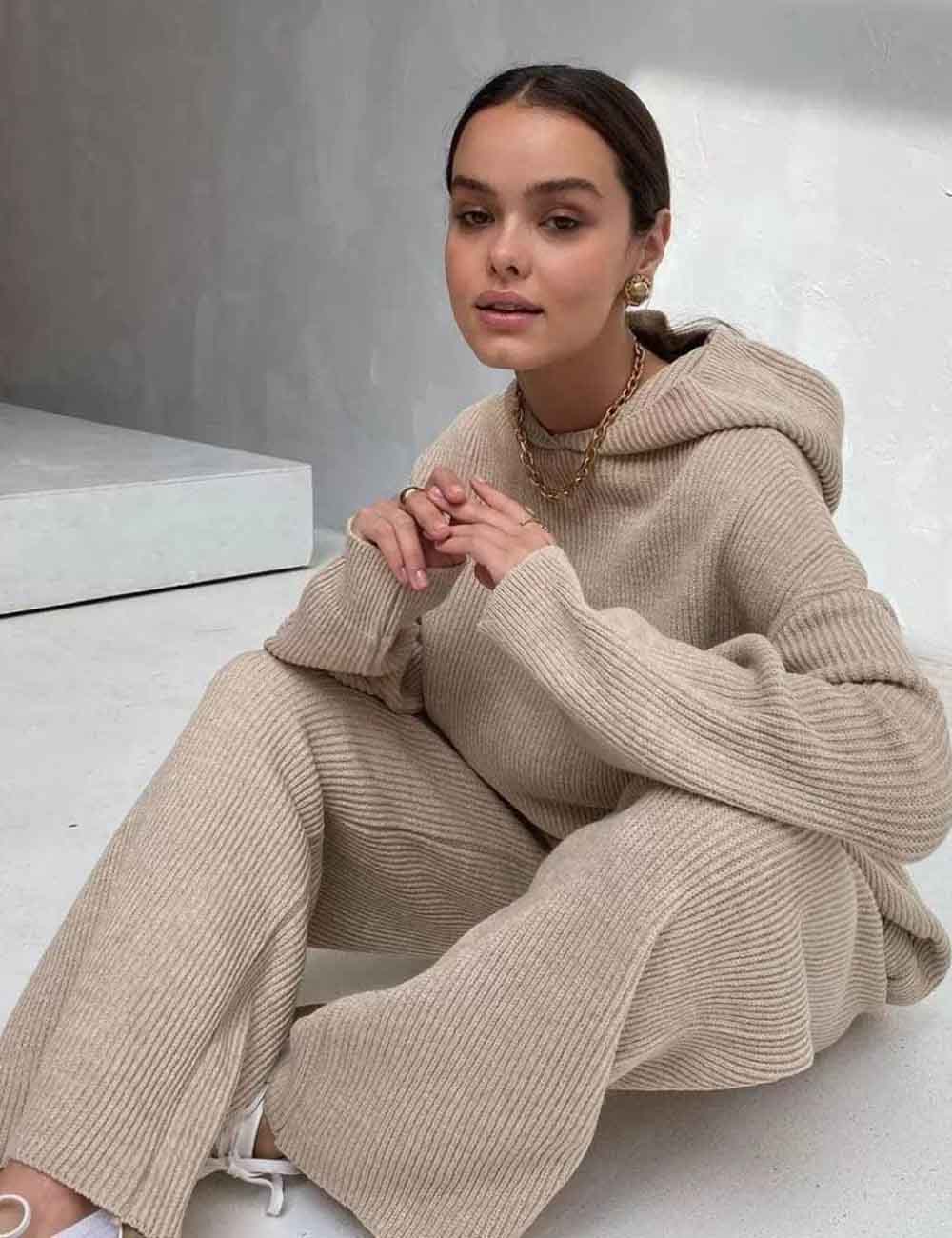 Ladies Irregular Stright Leg Loose Swearter Set TZ0050