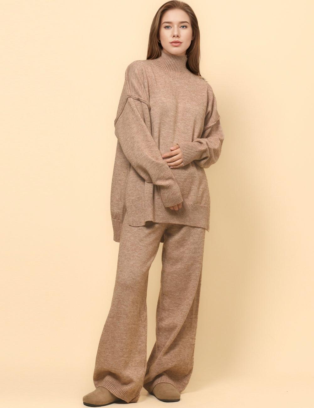 Ladies High Neck Pullover Sweater Pants 2PCS Set SKST4853