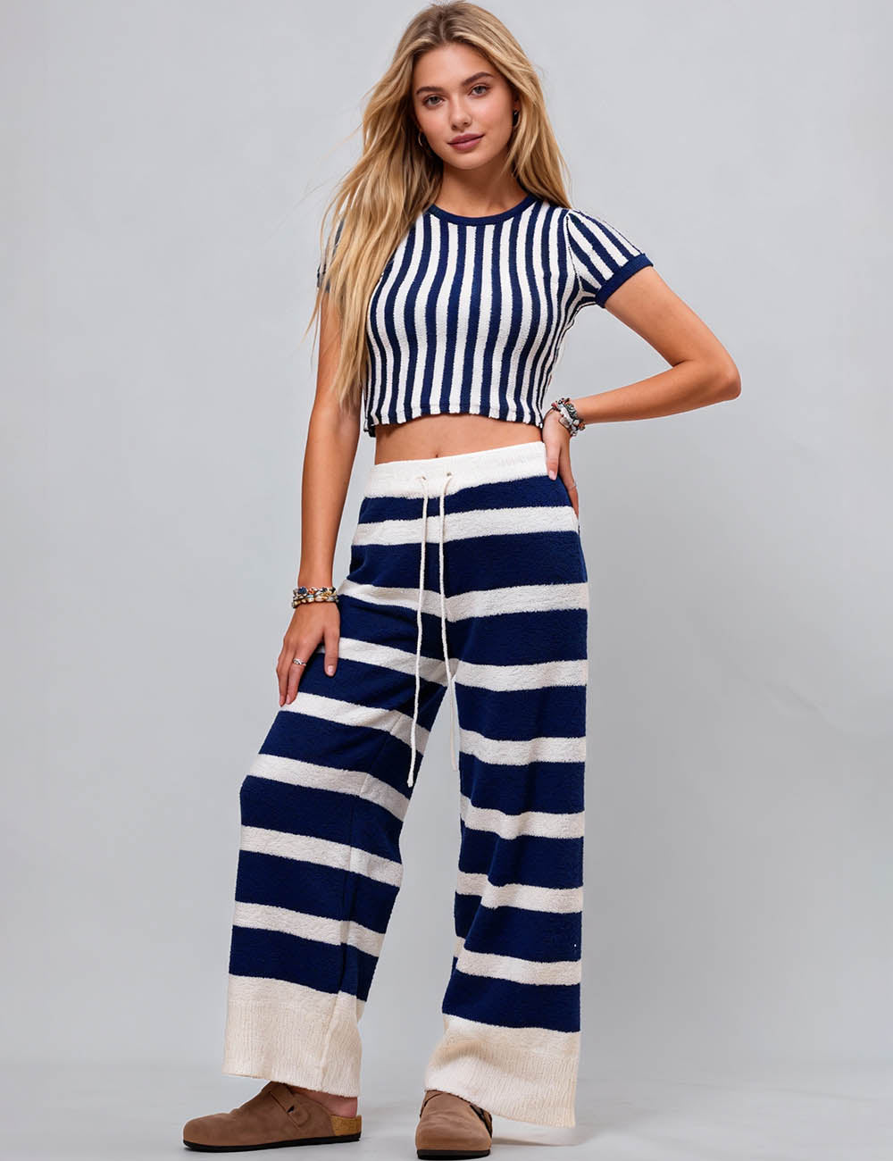 Ladies Stripe Color Block Sweater Pants 2PCS Set SKST41247