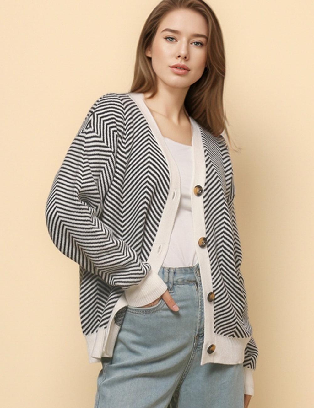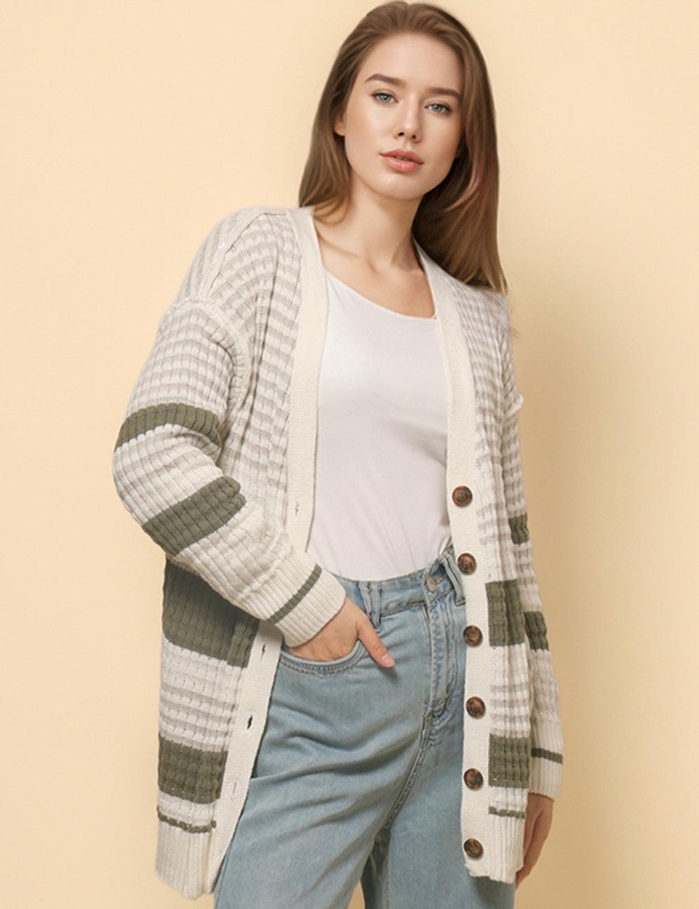Ladies V-Neck Drop Shoulder Slouchy Cardigan SKT4765