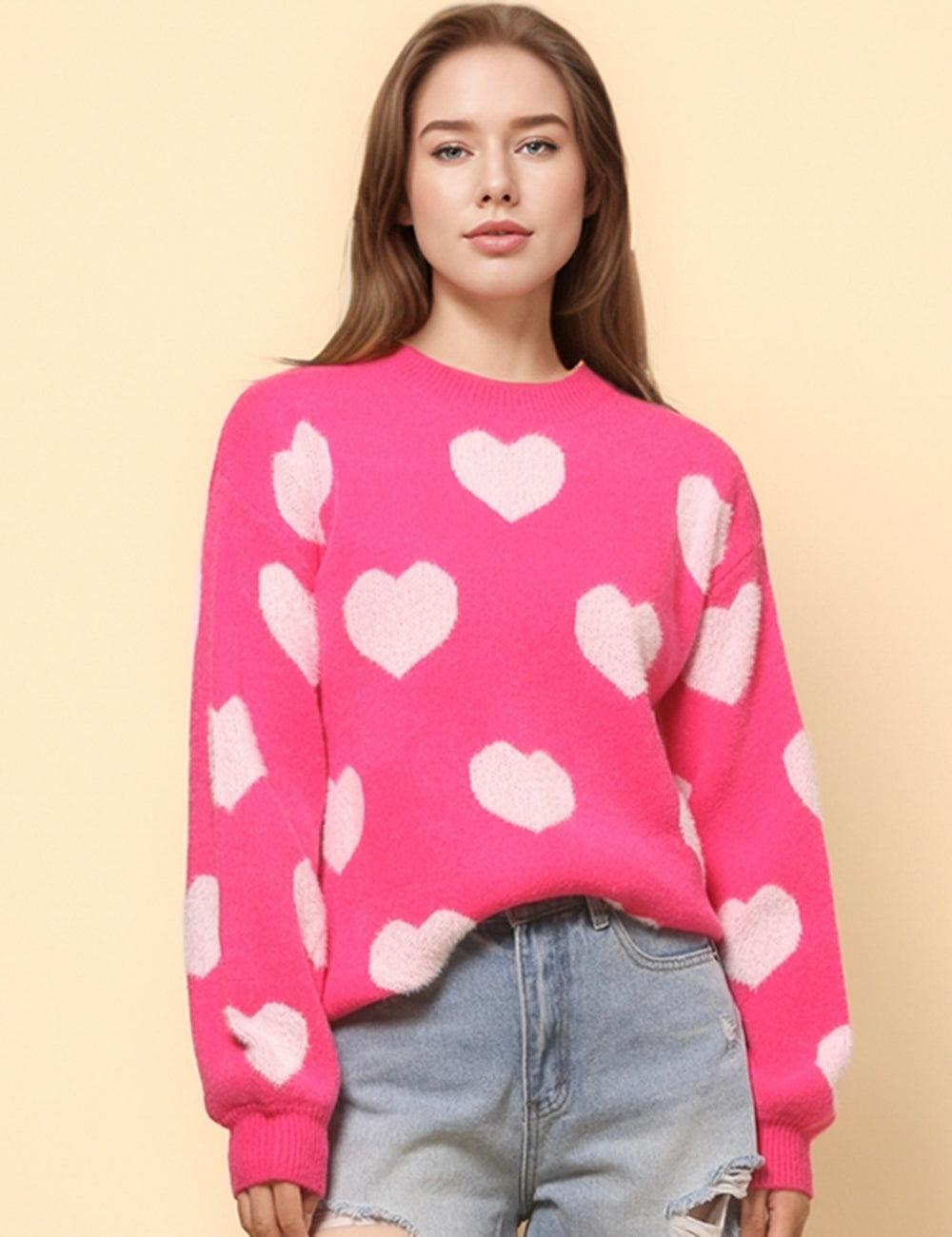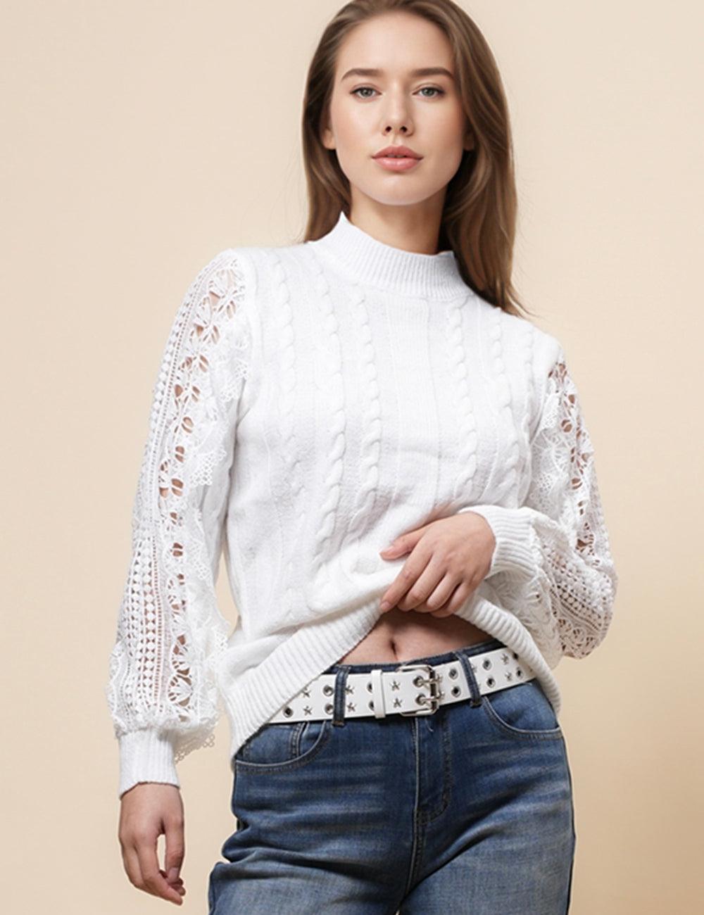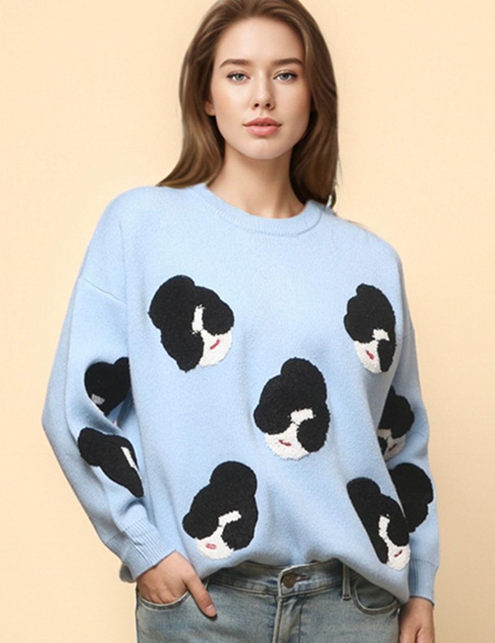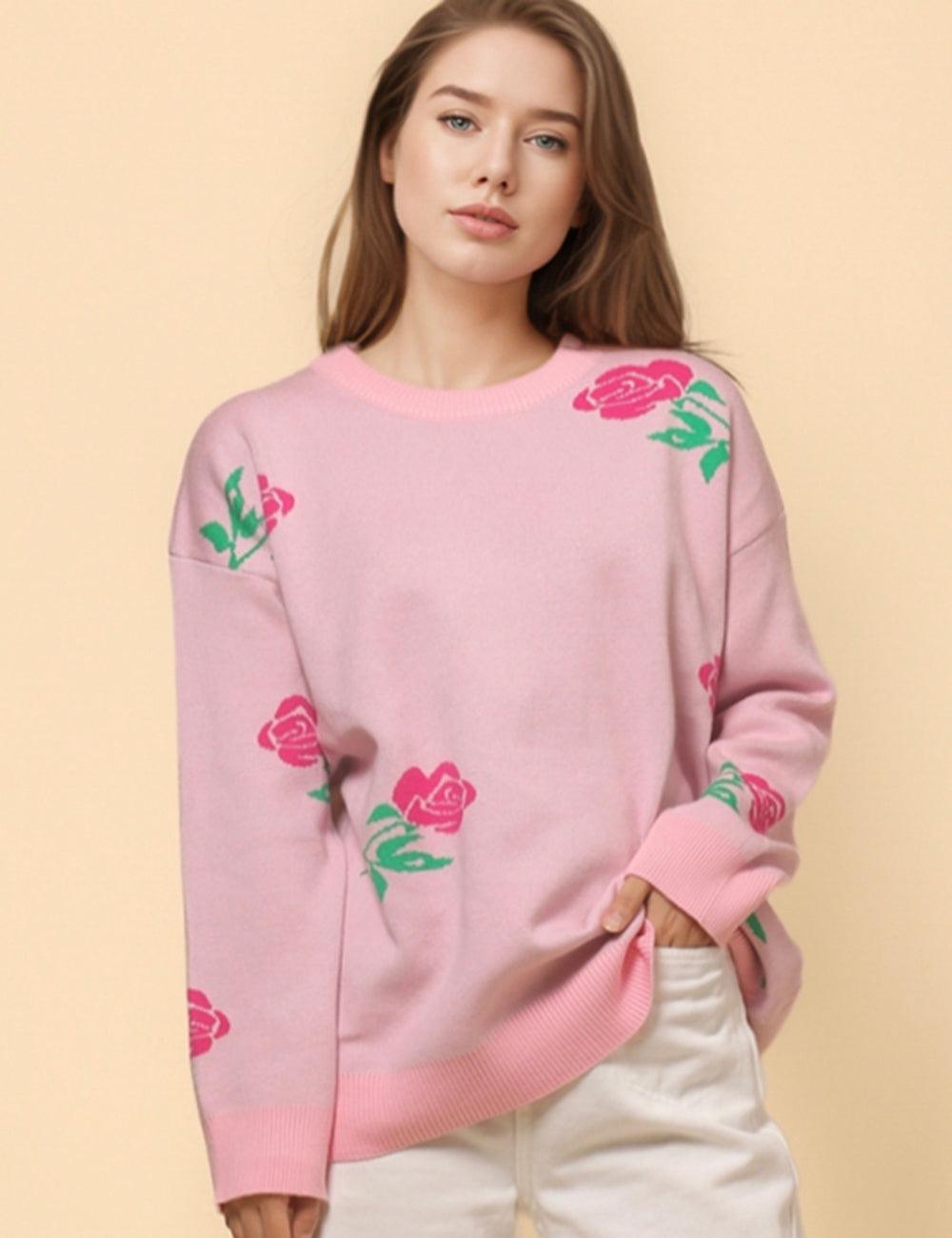 Ladies Rose Knit Round Neck Daily Pullover Sweater SKT4792