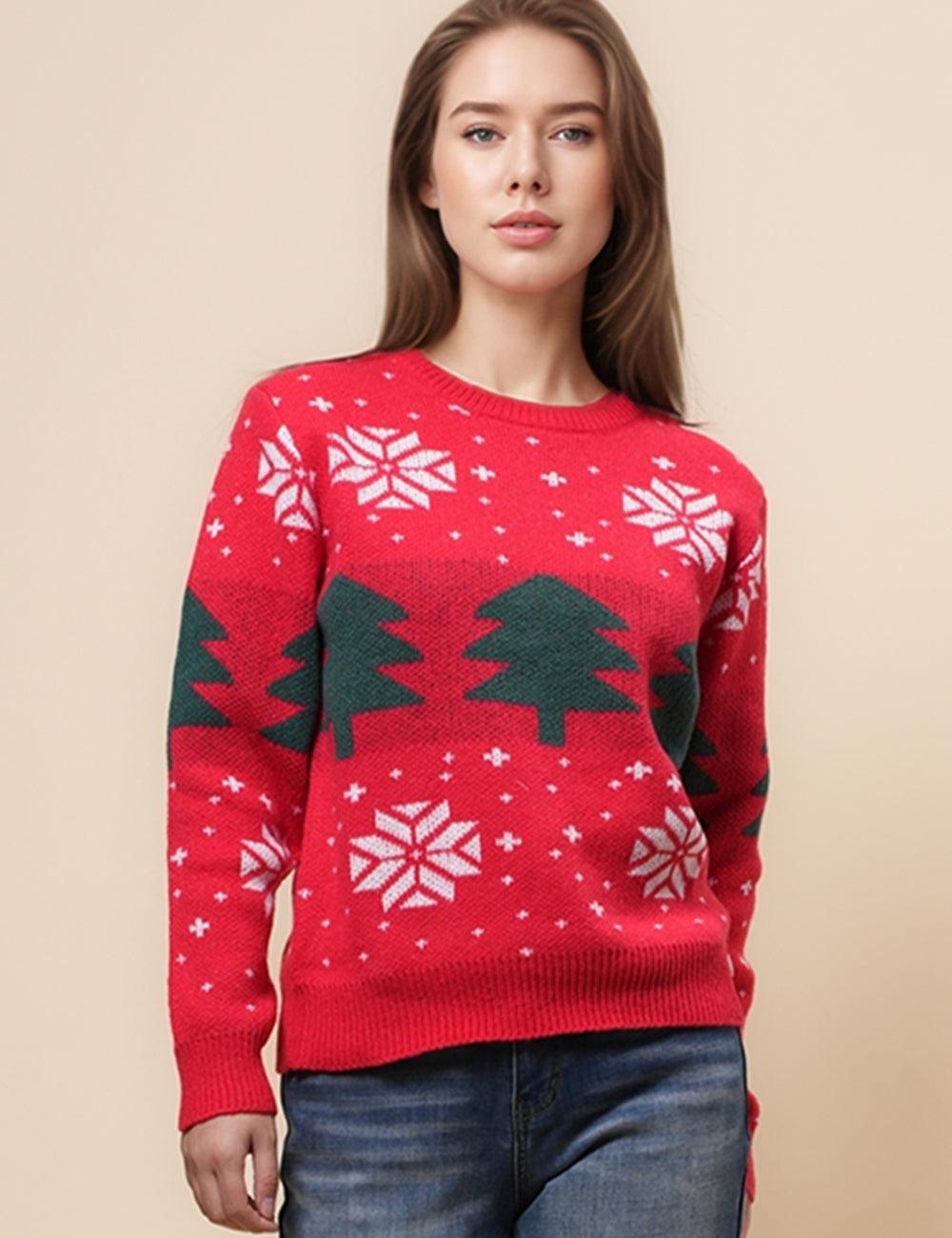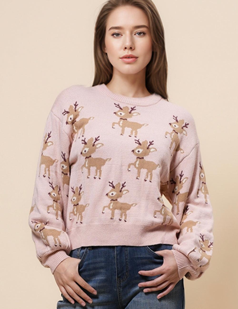 Ladies Christmas Pullover Deers Pattern Sweater SKT4930