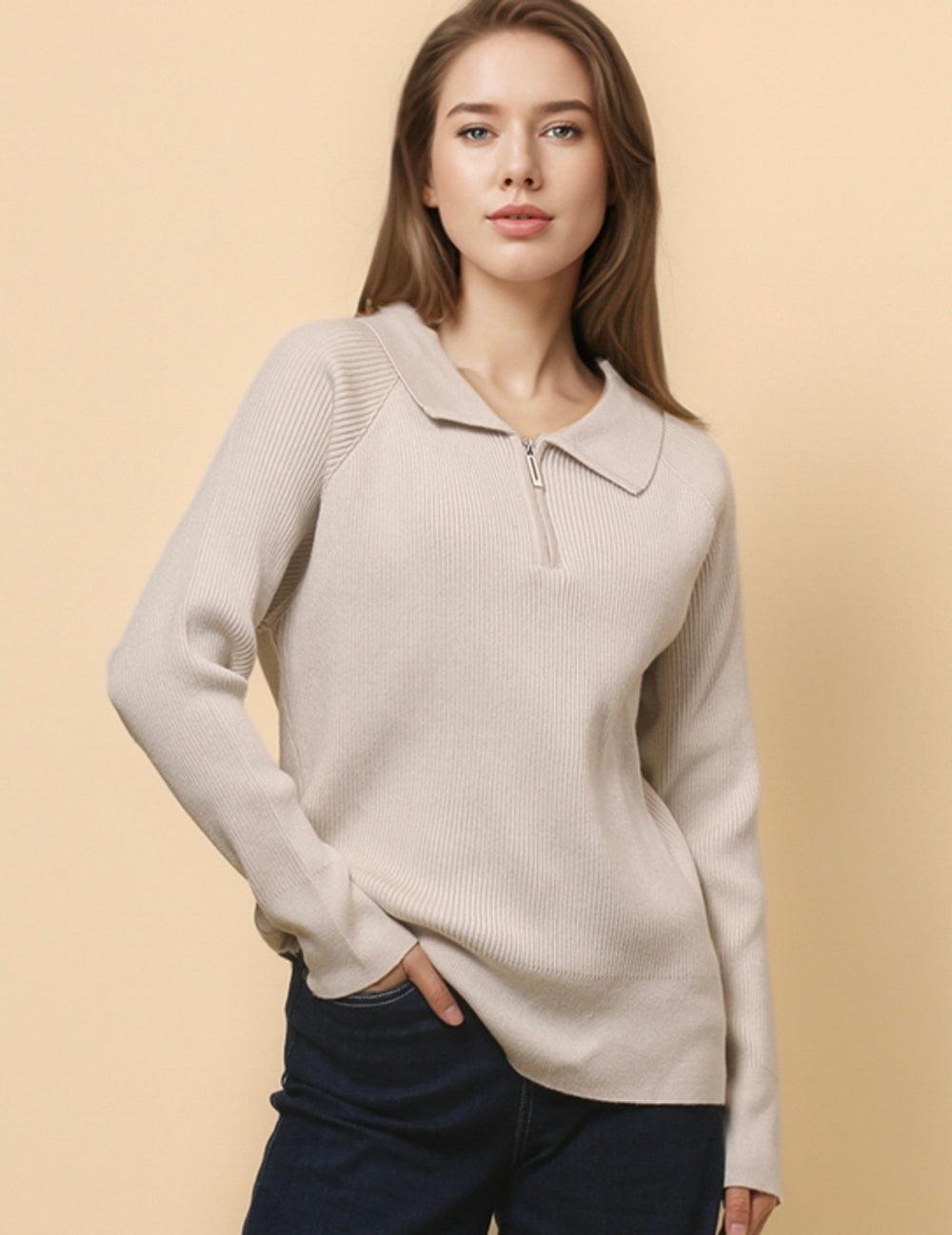 Ladies Zip Stand Collar Pullover Sweater SKT4777