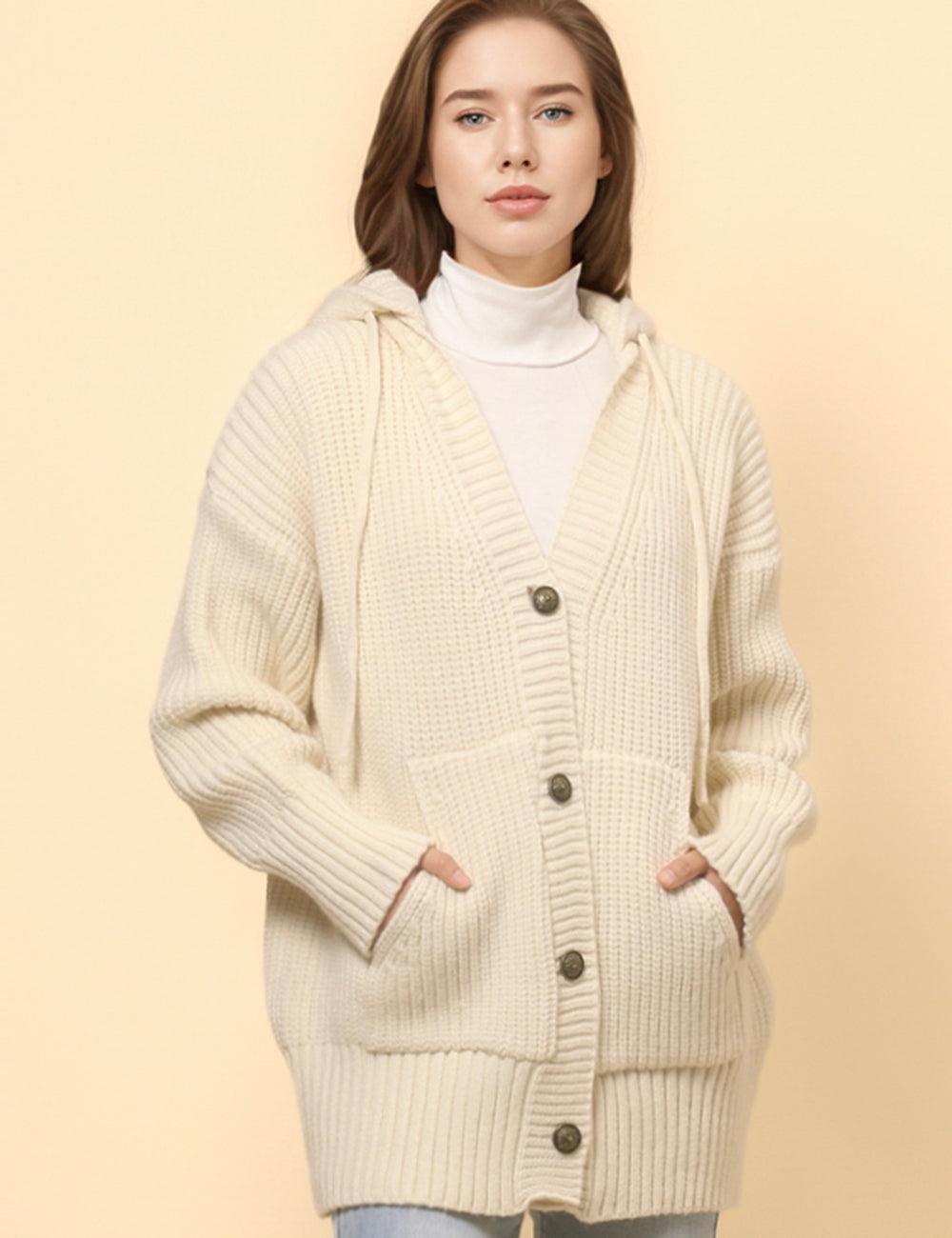 Ladies Solid Color Long Sleeve Shoodie Cardigan SKT4808
