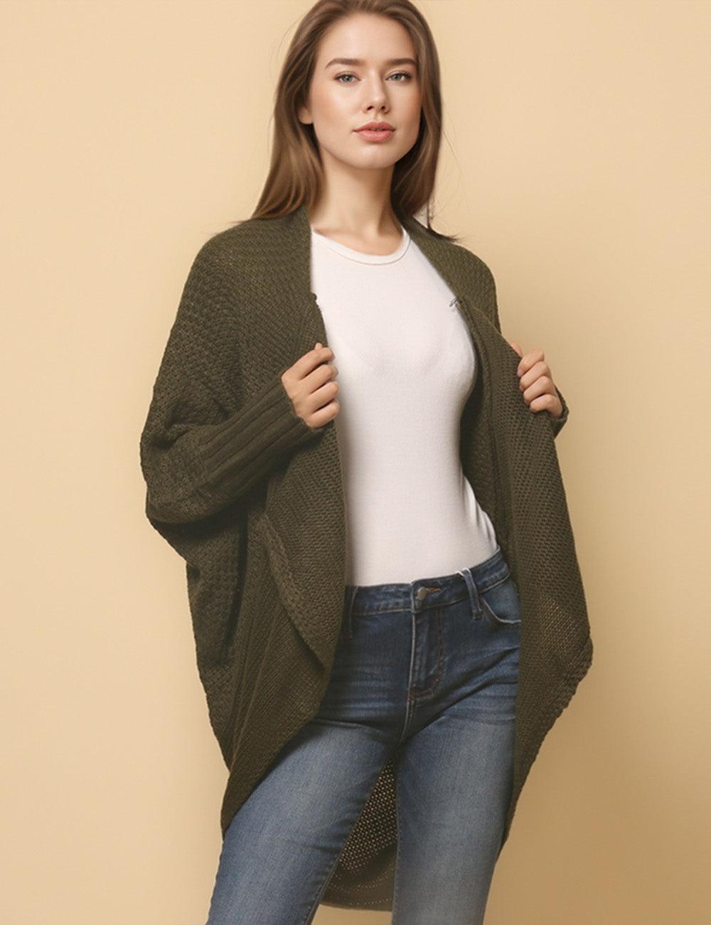 Ladies Bat Sleeves Open Front Knit Cardigan SKT4763