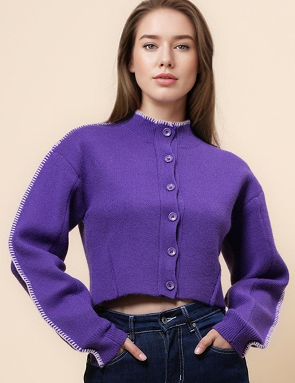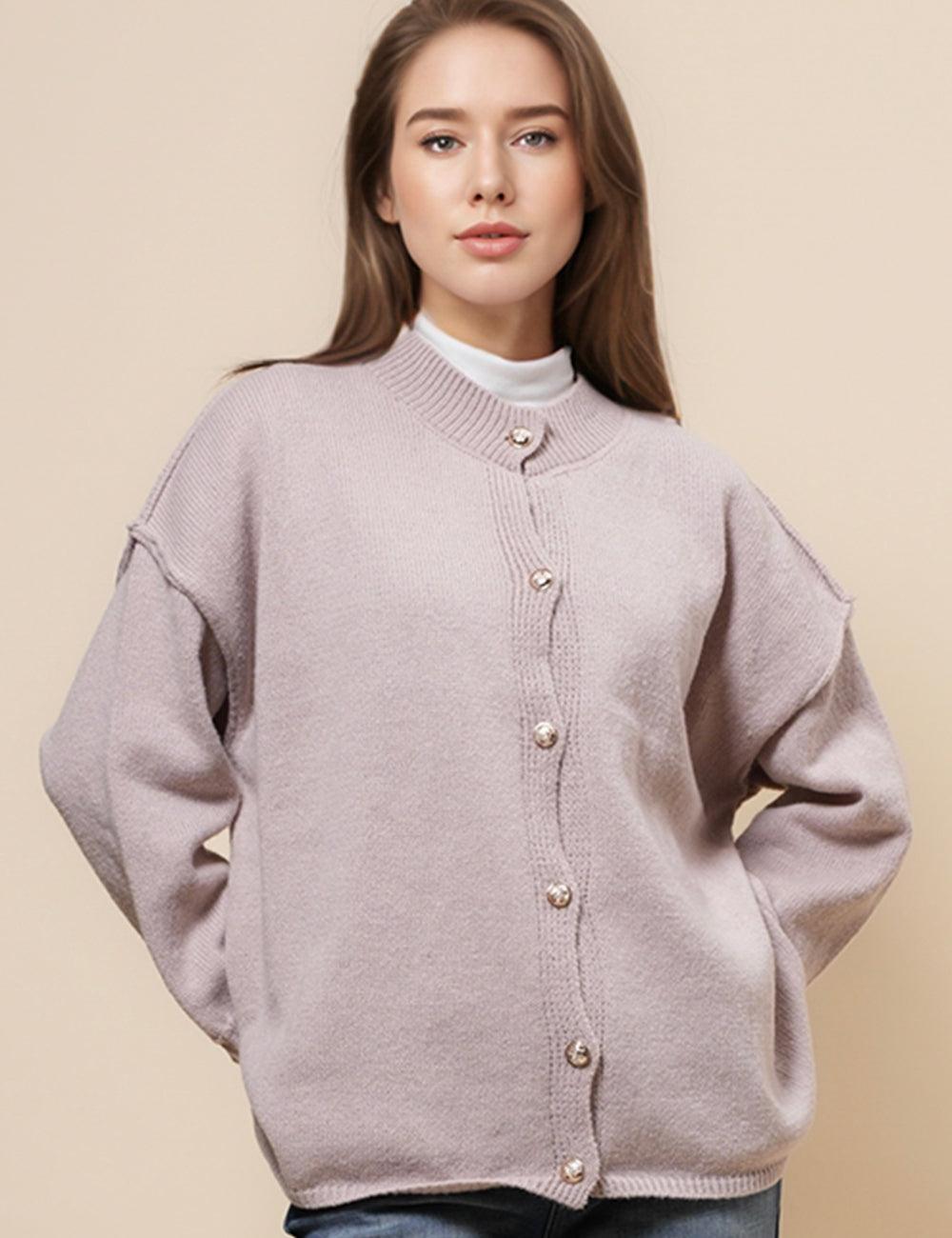 Ladies Mock Neck Sweater Golden Botton Cardigan SKT4933