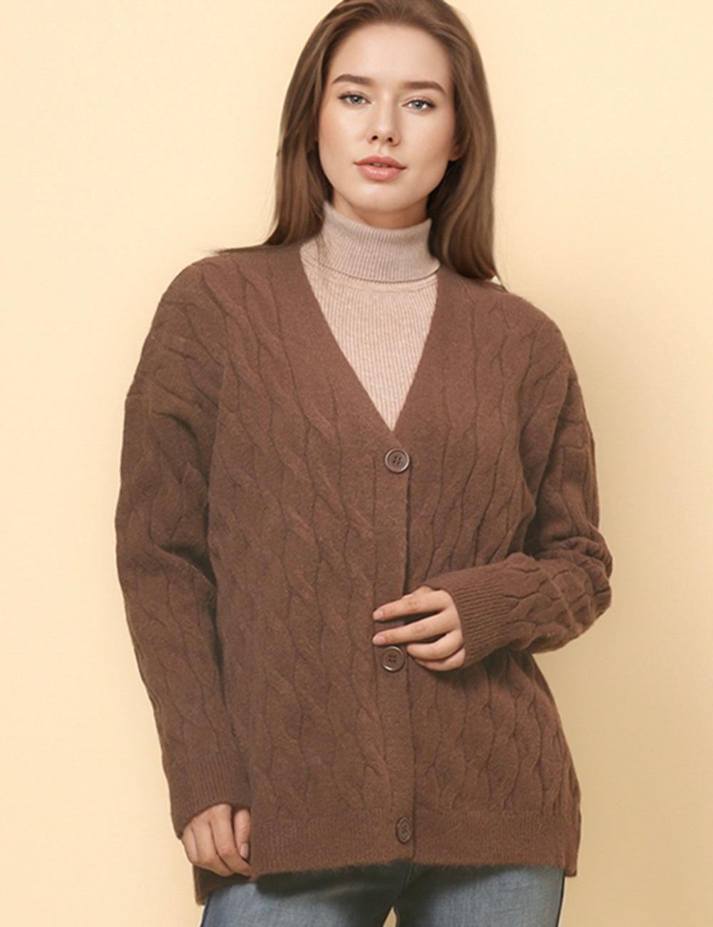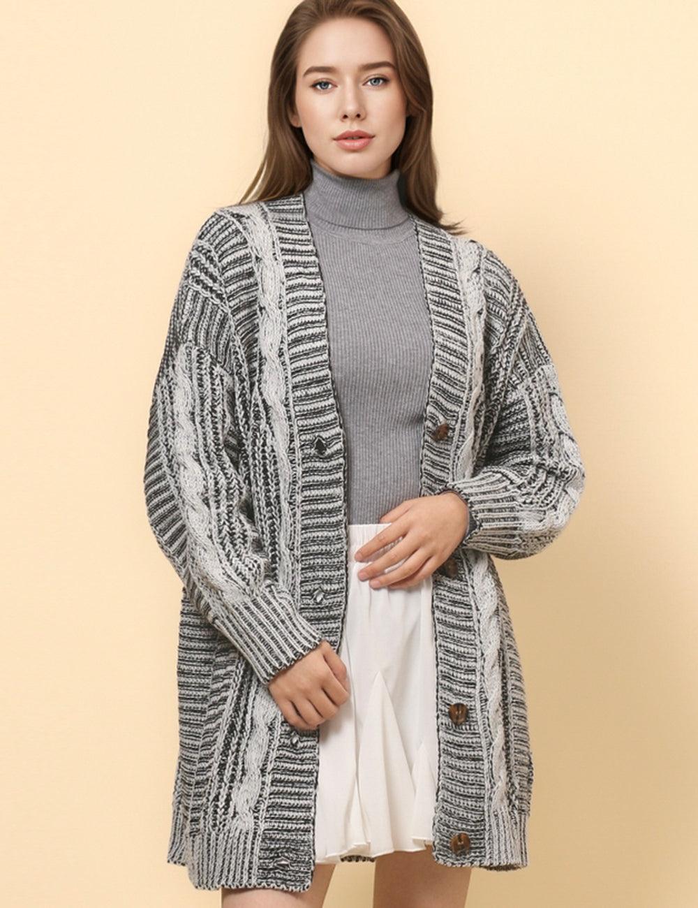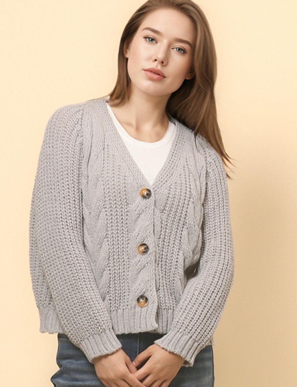 Ladies Solid Color Cable Knit Botton Cardigan SKT4811