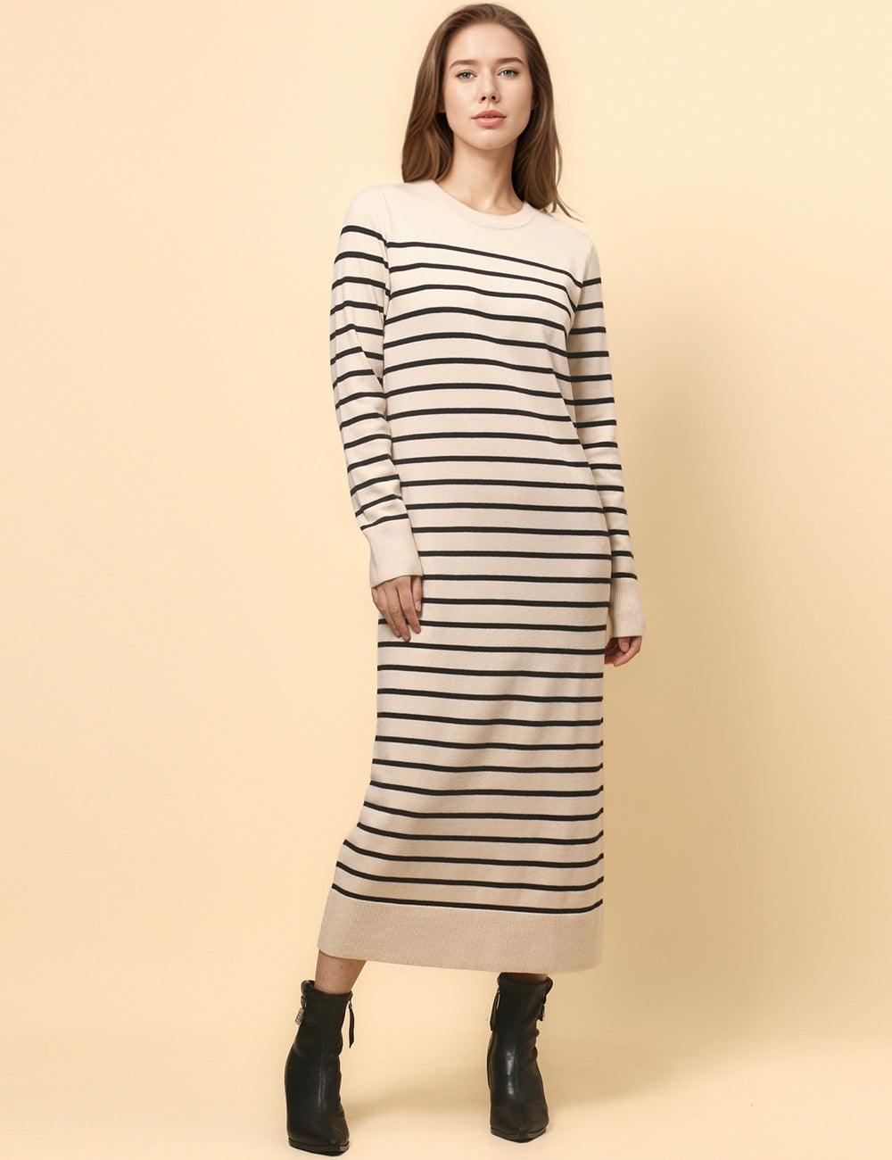 Ladies Color Block Stripe Sweater Midi Dress SKD4850