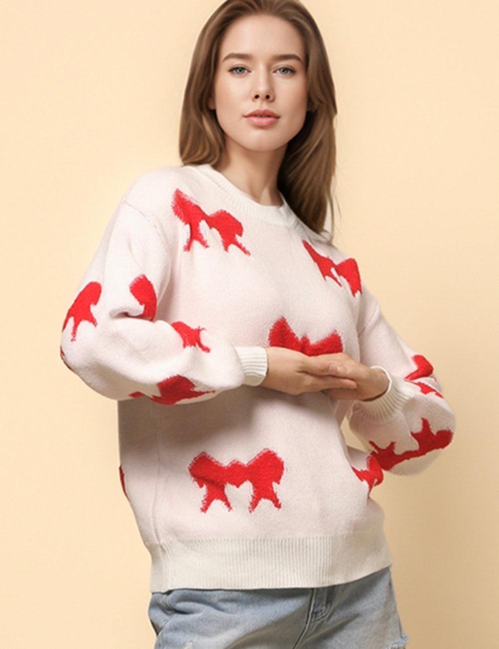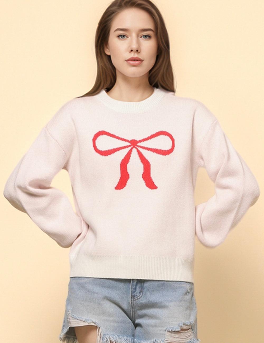 Ladies Color Block Bowknot Pullover Sweater SKT4741