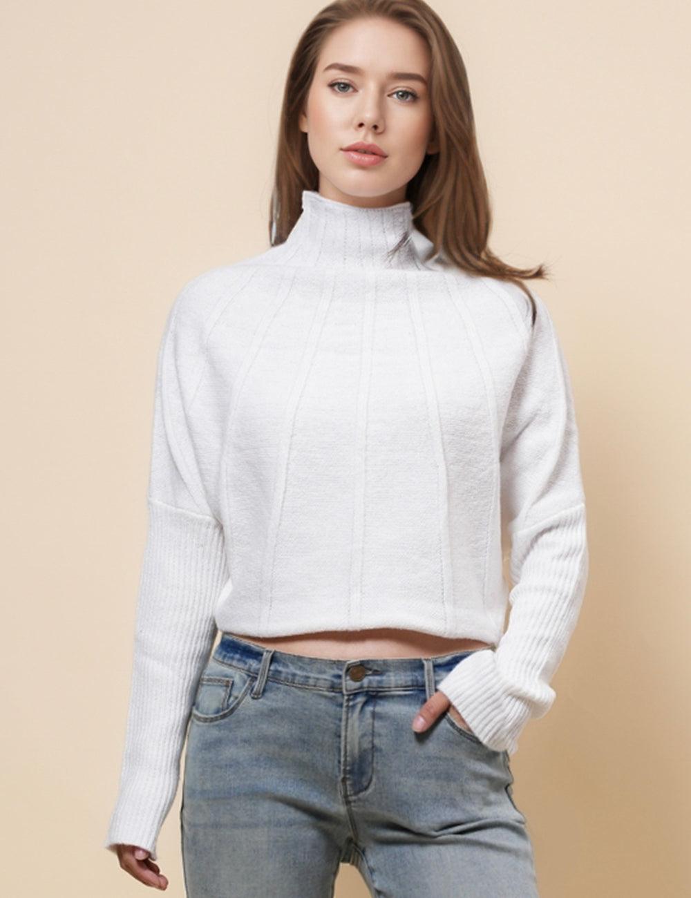 Ladies Solid Color Polo Neck Rib Knit Pullover Sweater SKT4790