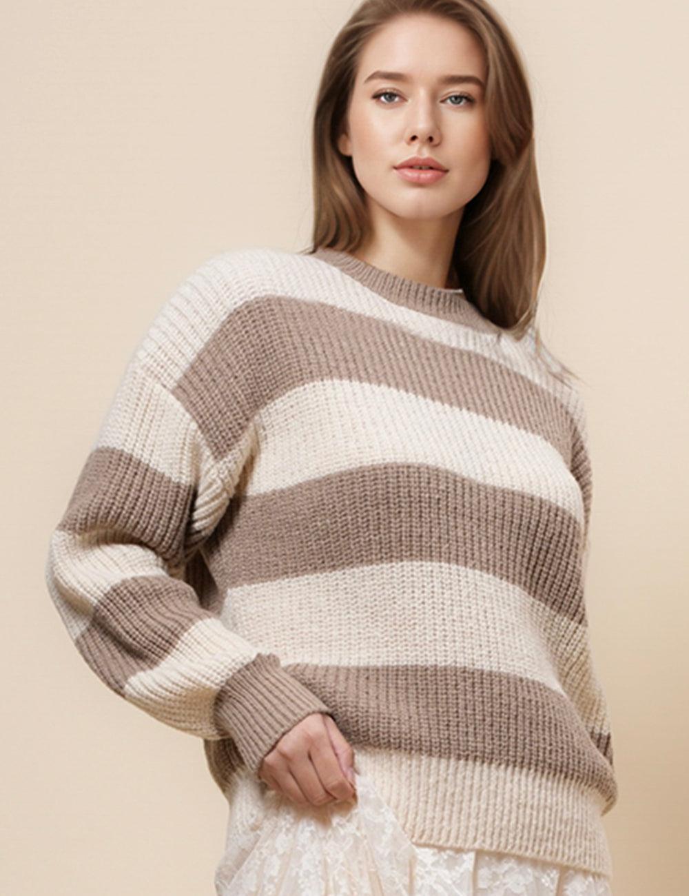 Ladies Stripe Color Block Everyday Pullover Sweater SKT4932