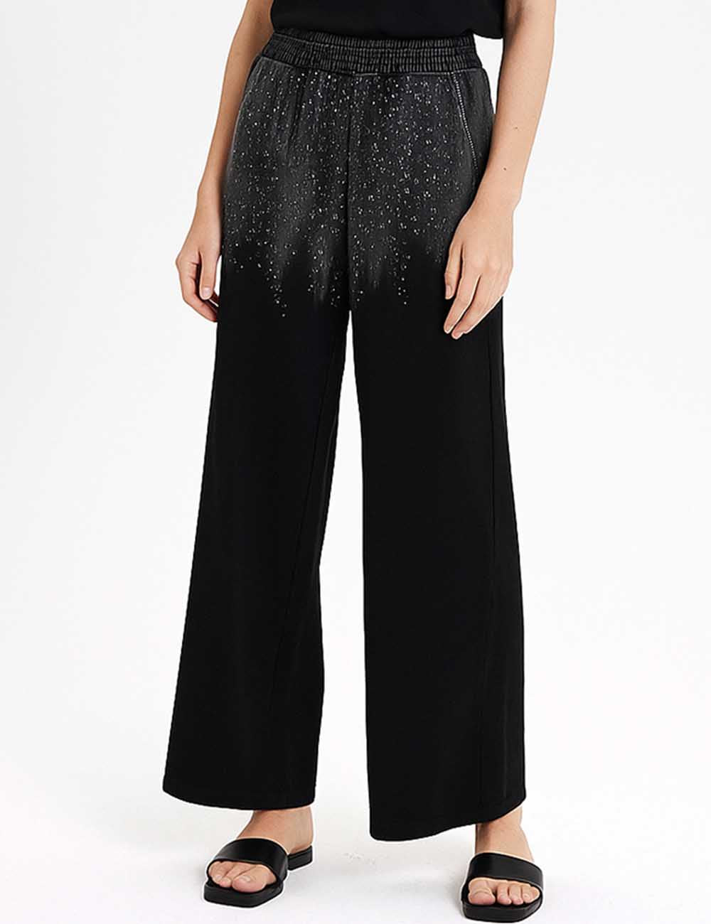 Ladies Sparkle Rhinestone Elastic Waist Wide Leg Sweatpants