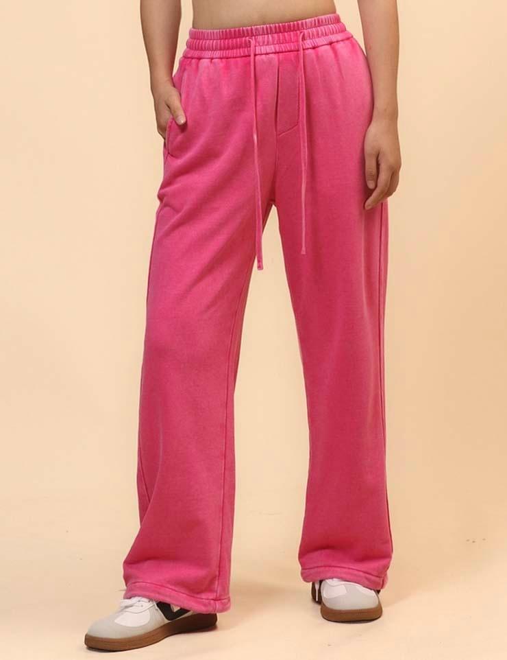 Ladies Slouchy Washed Waist Wide Leg Sweatpants SKP4699