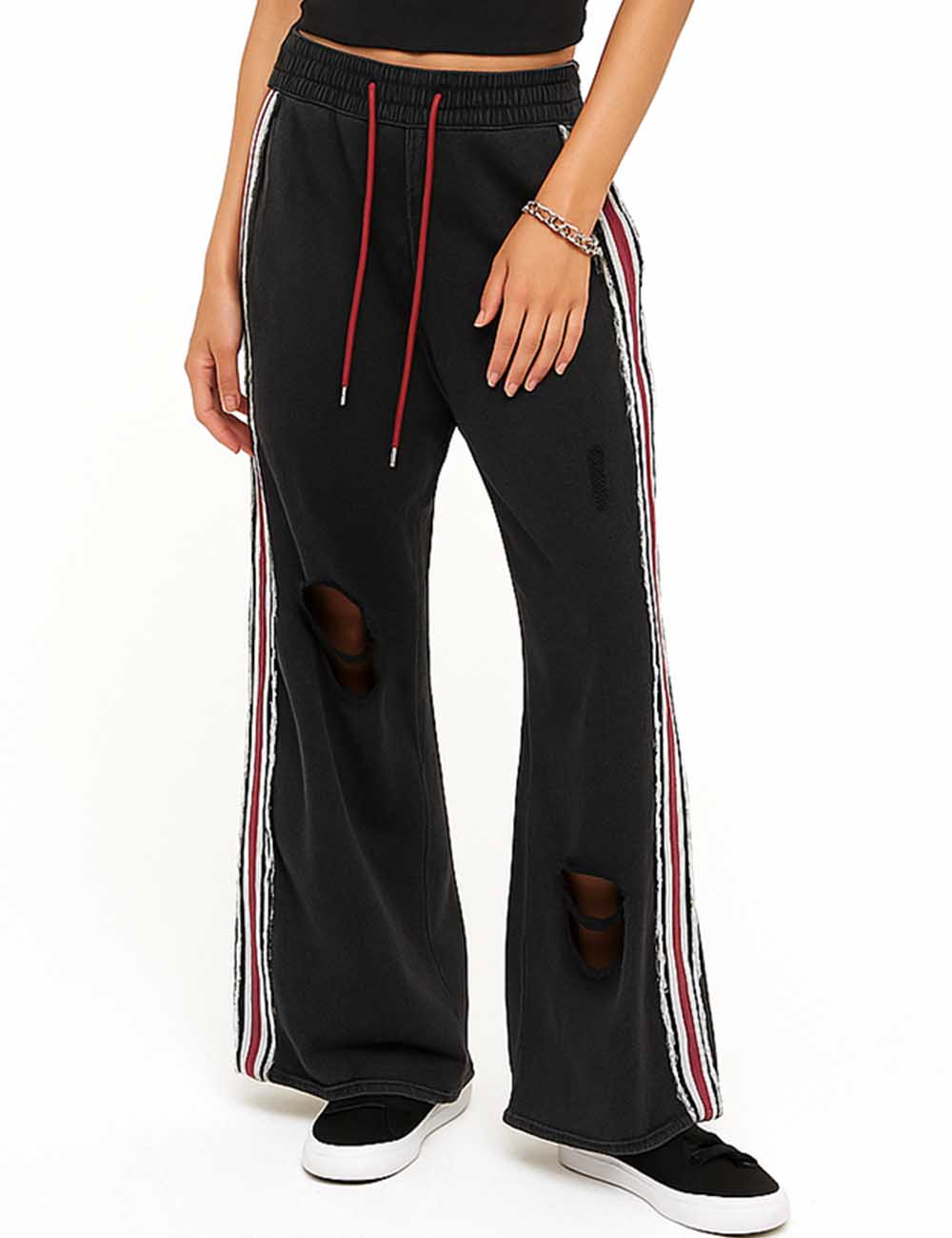 Women Cozy Side Stripe Color Block Distressed Sweatpants