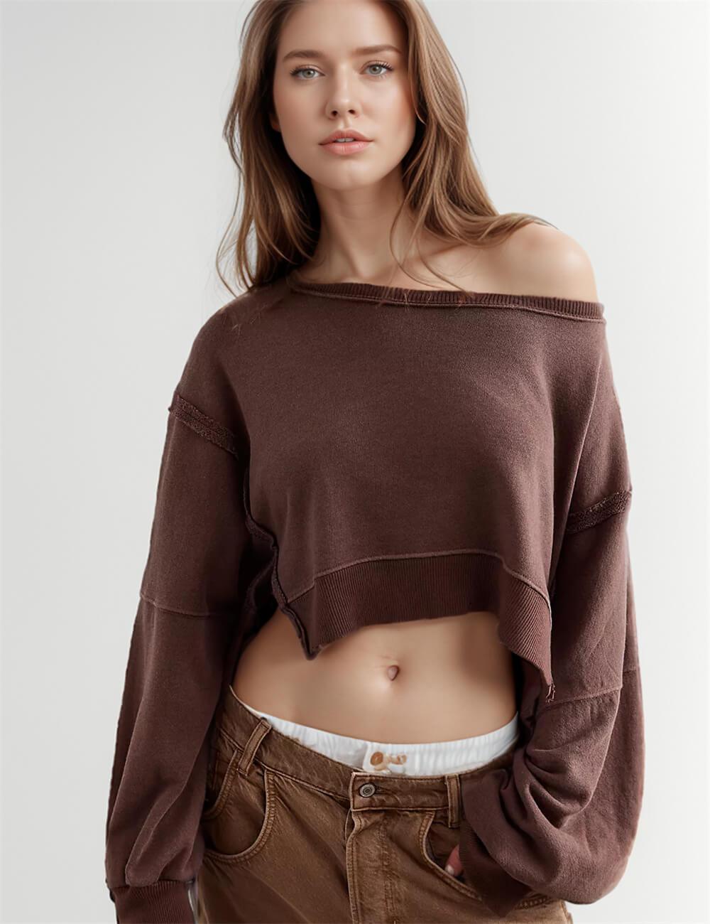 Ladies Solid Color Irregular Slouchy Sweatshirt SKT385