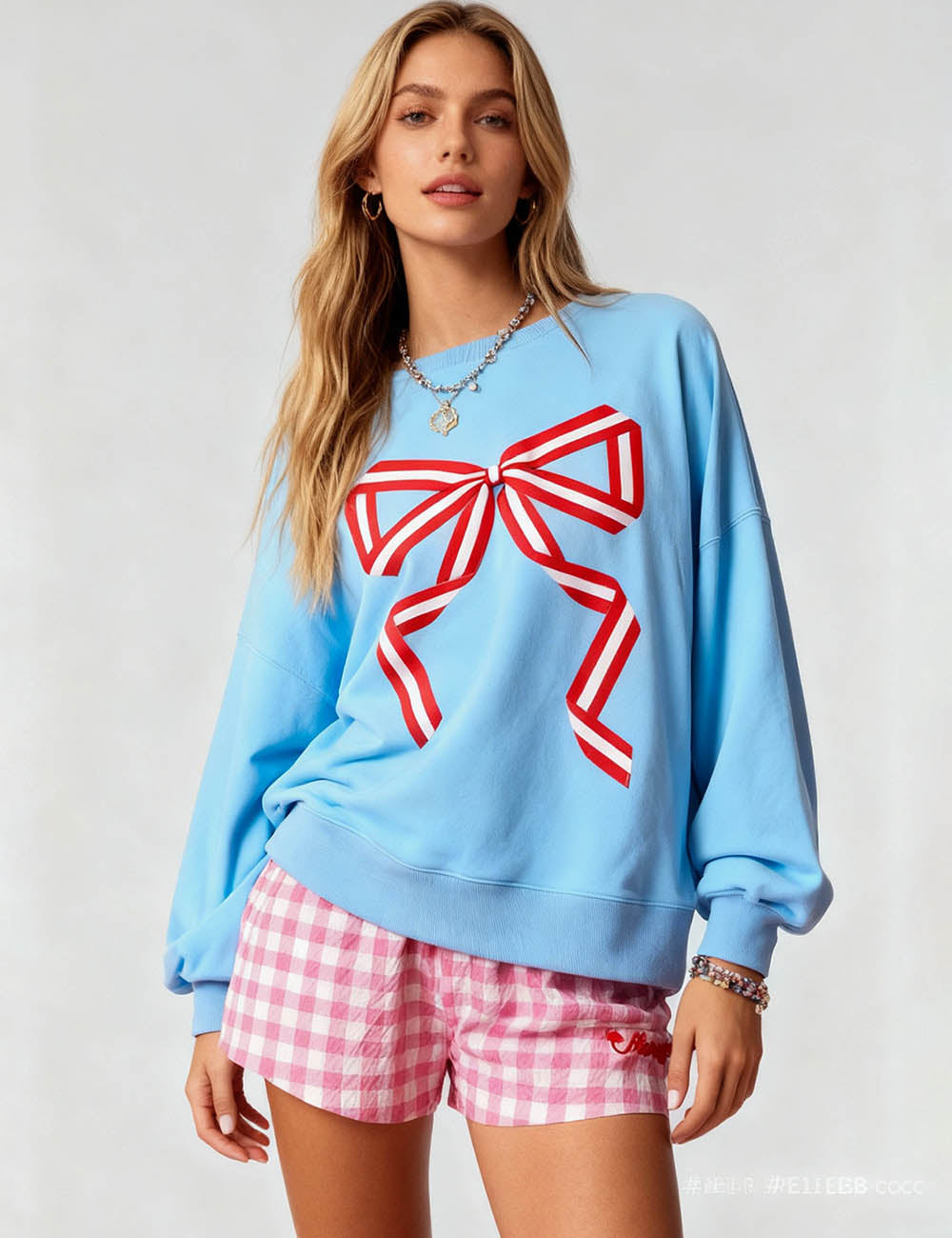 Ladies Christmas Bow Letter Embroidery Pullover Sweatshirt