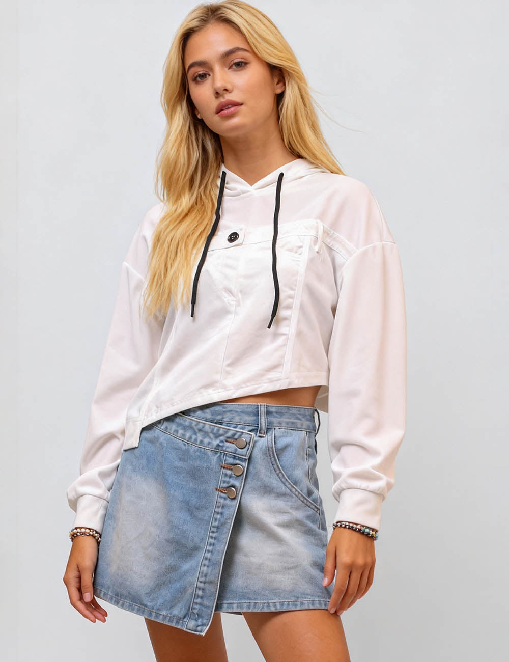Ladies Solid Color Drawstring Hood Hoodie SKT4722