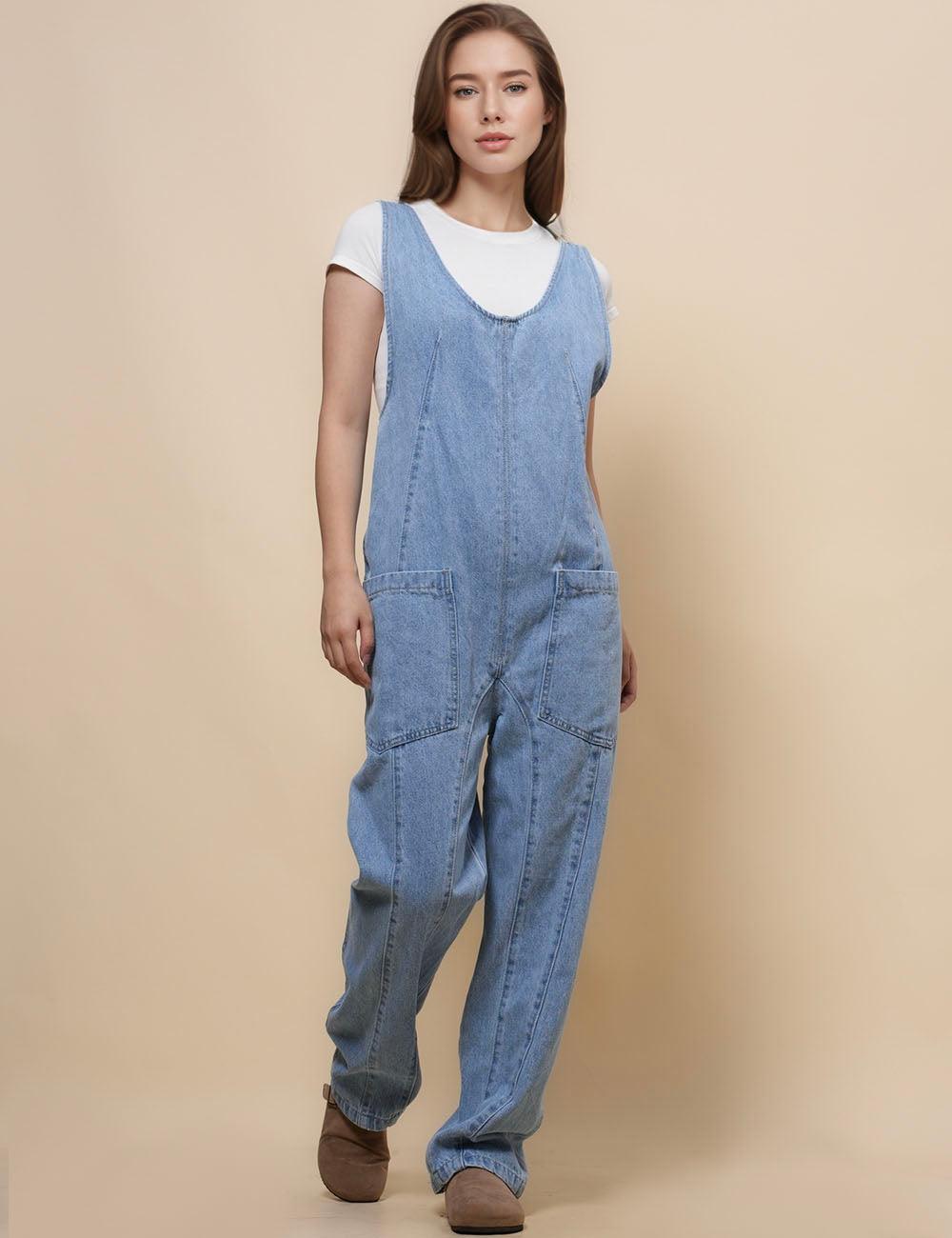 Denim Adjustable Shoulder High Roller Jumpsuit SKJ150
