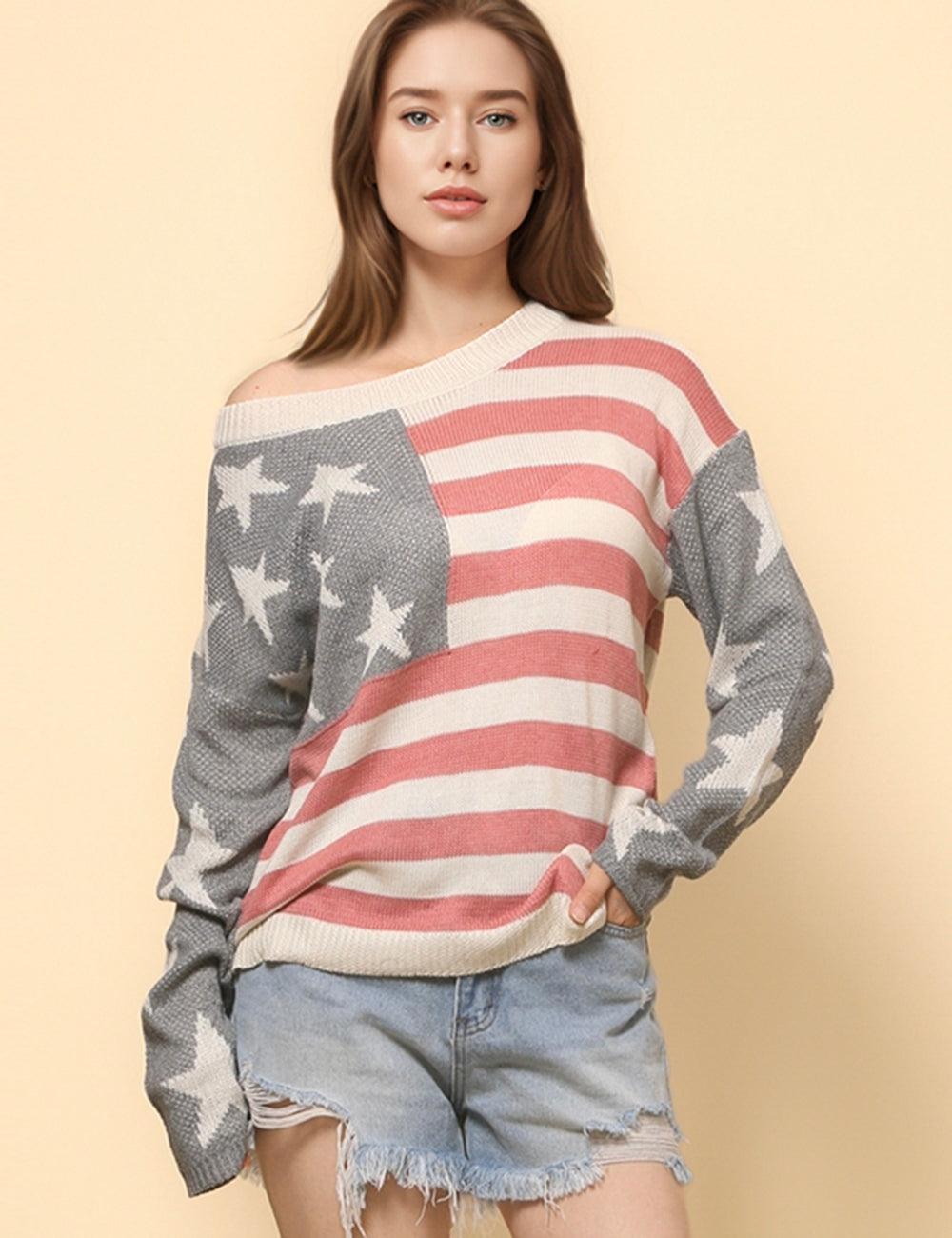 Ladies The Stars and The Stripes Pullover Sweater SKT4748