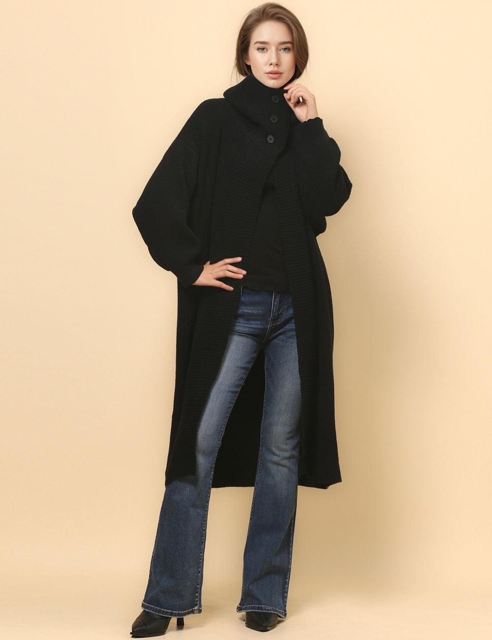 Ladies Mock Neck Sweater Golden Botton Cardigan SKT4933