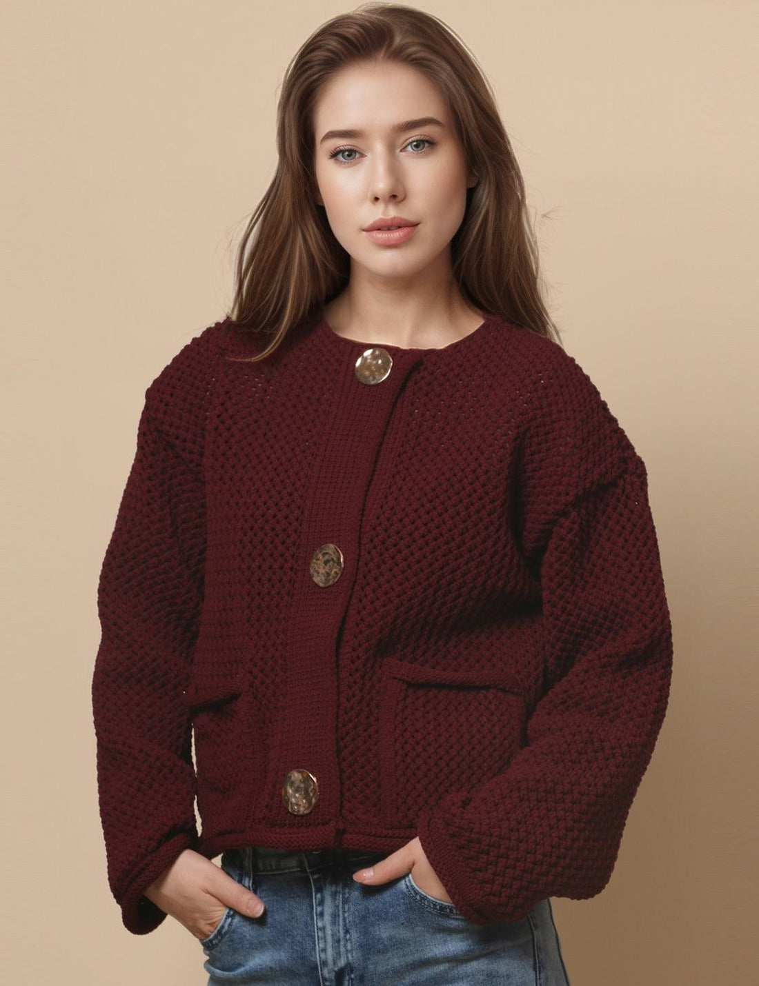 Ladies Button Front Dropped Shoulder Cardigan SKT529