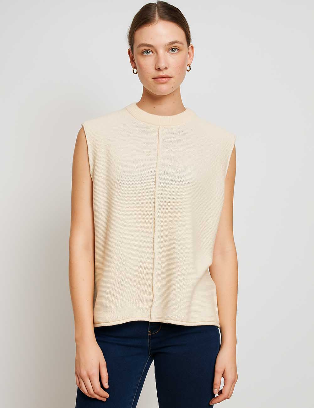 Features: * Ladies Sweater Vest * With Tiny Stretch * Sleeveless * Solid Color * Round Neck...