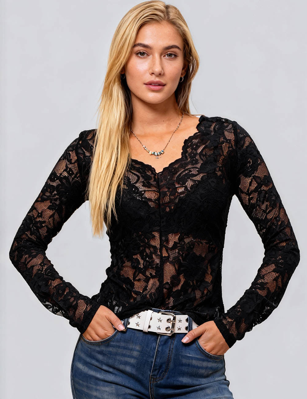 Ladies See Sheer Lace Blouse Layring Top SKT41019