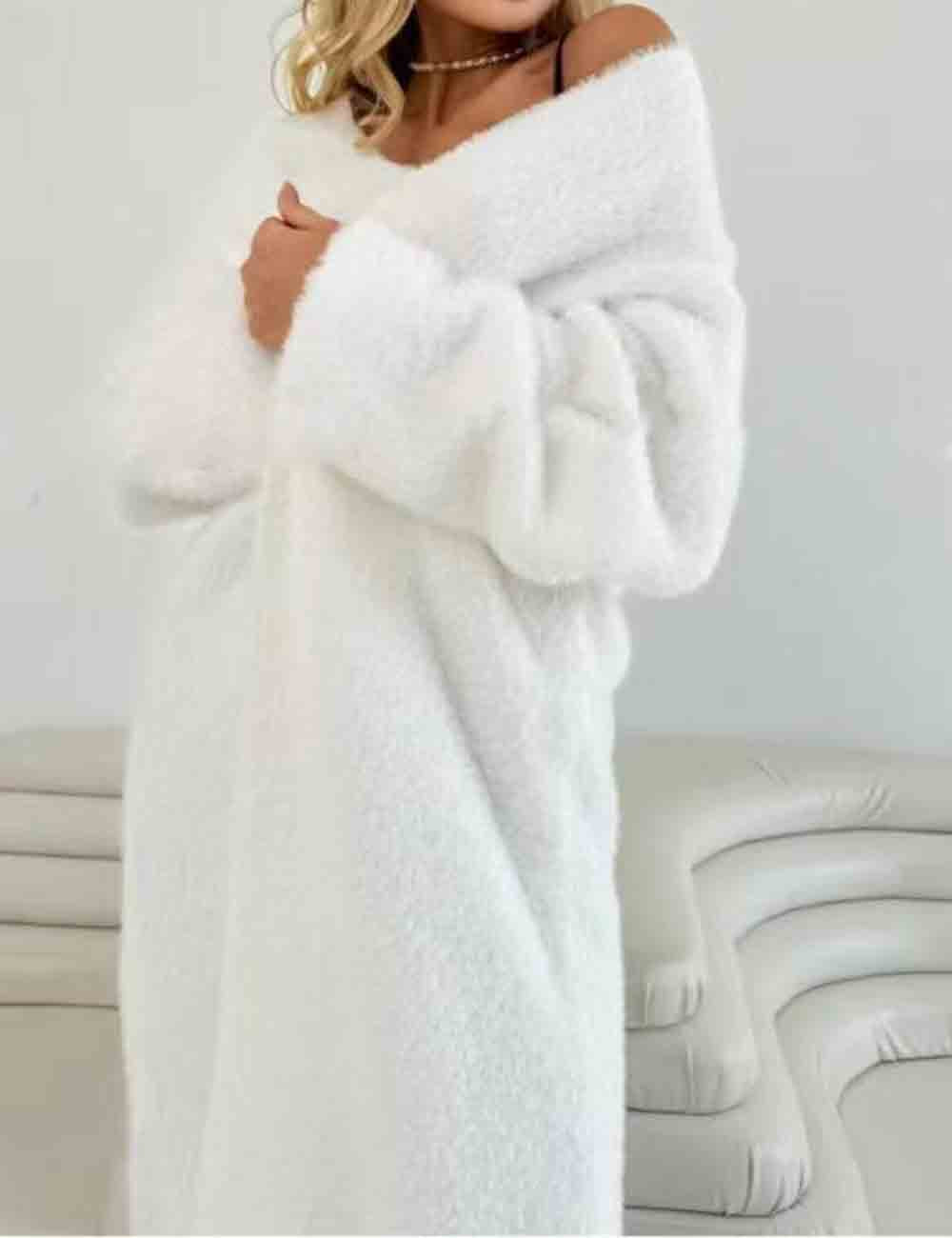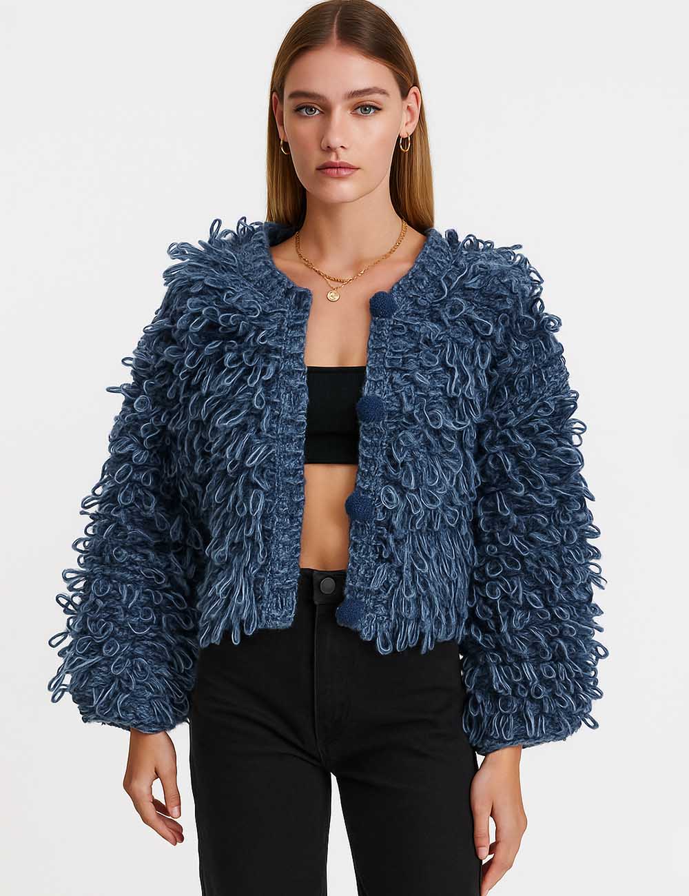 Ladies Shaggy Faux Mohair Fur Button Front Knit Cardigan