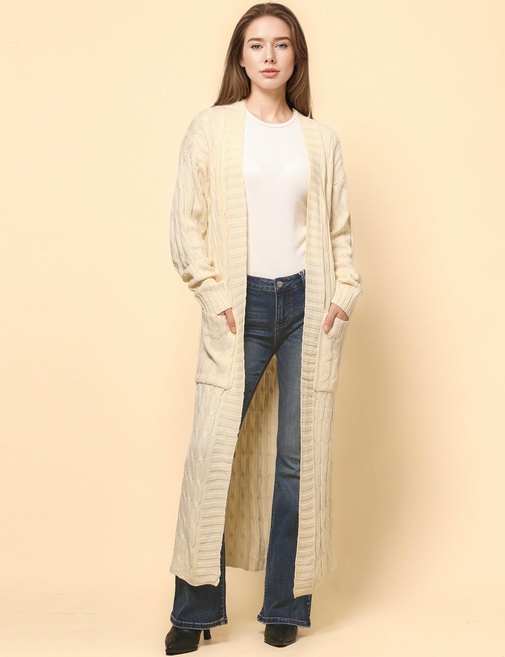 Ladie Solid Color Open Front Long Cardigan SKT4747