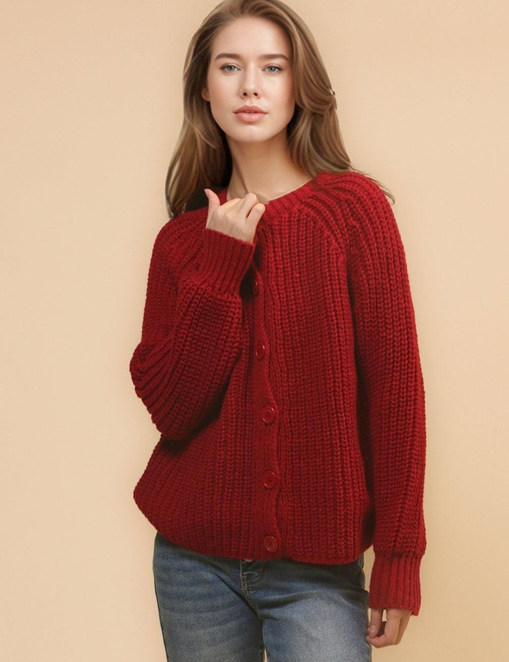 Ladies Solid Color Thick Front Placket Long Sleeves Chunky Cardigan