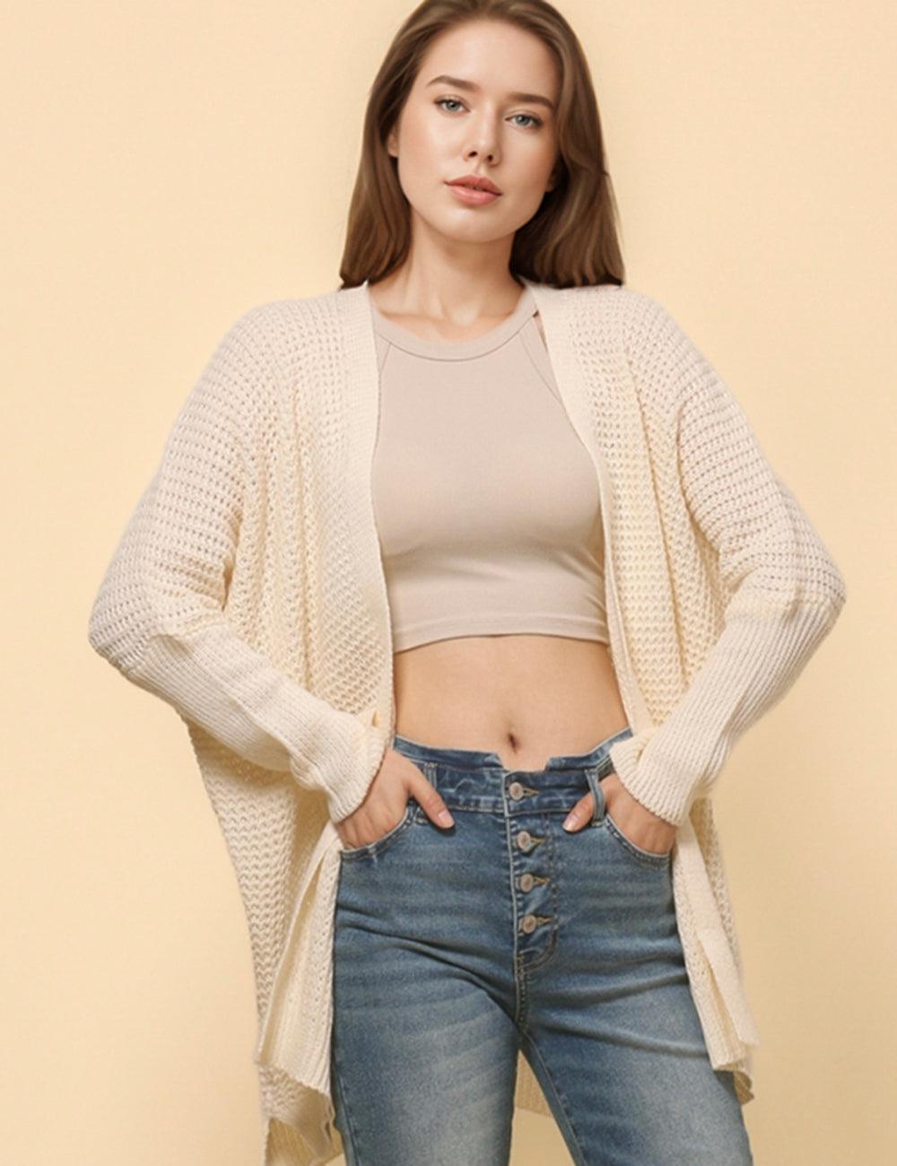 Ladies Solid Color Drop Shoulder Open Cardigan SKT4770