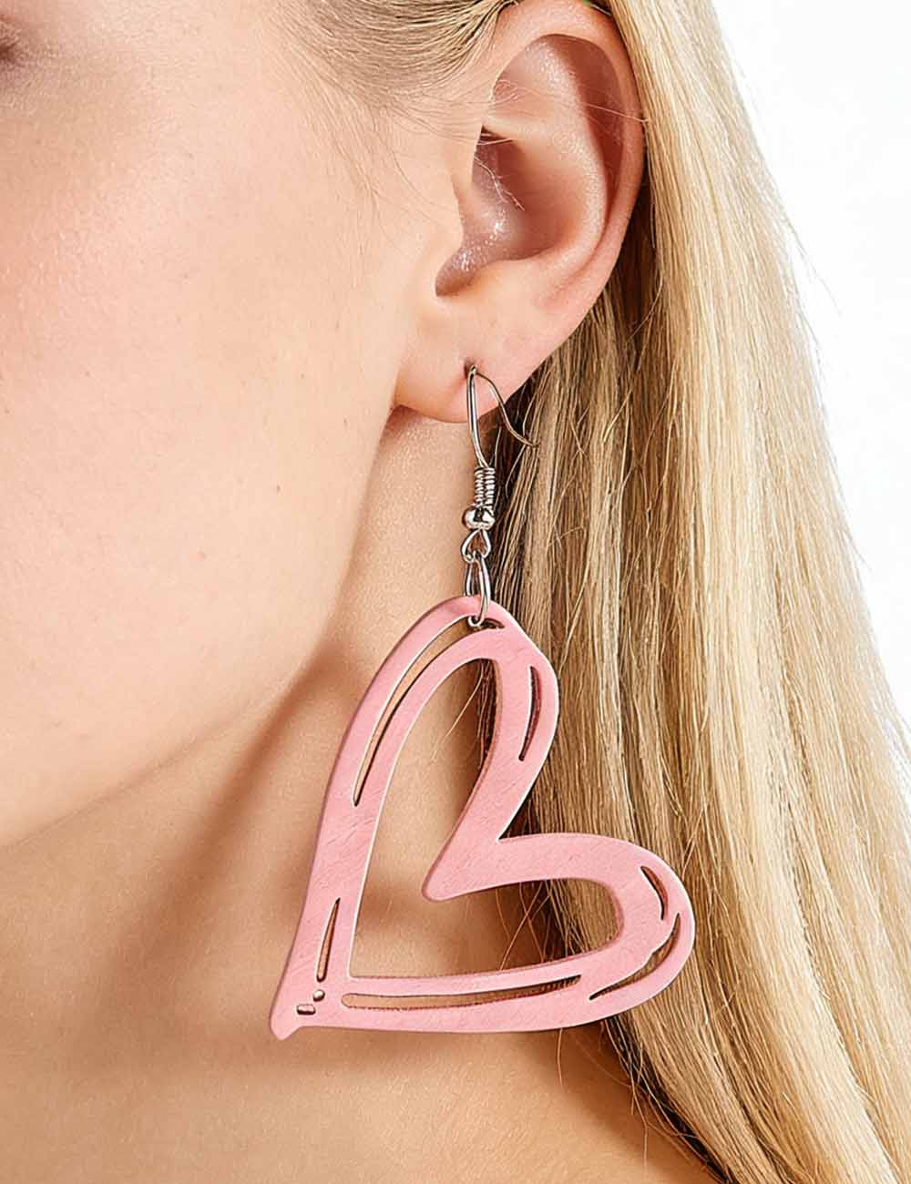 Ladies Valentine Wood Heart Hollow Pendant Earrings