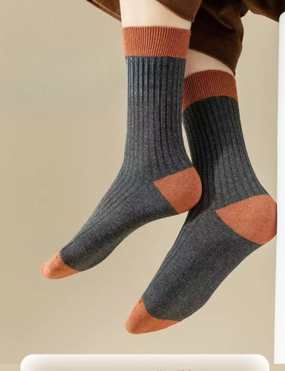 Ladies Color Block Rib Cotton Daily Socks SKASC4163