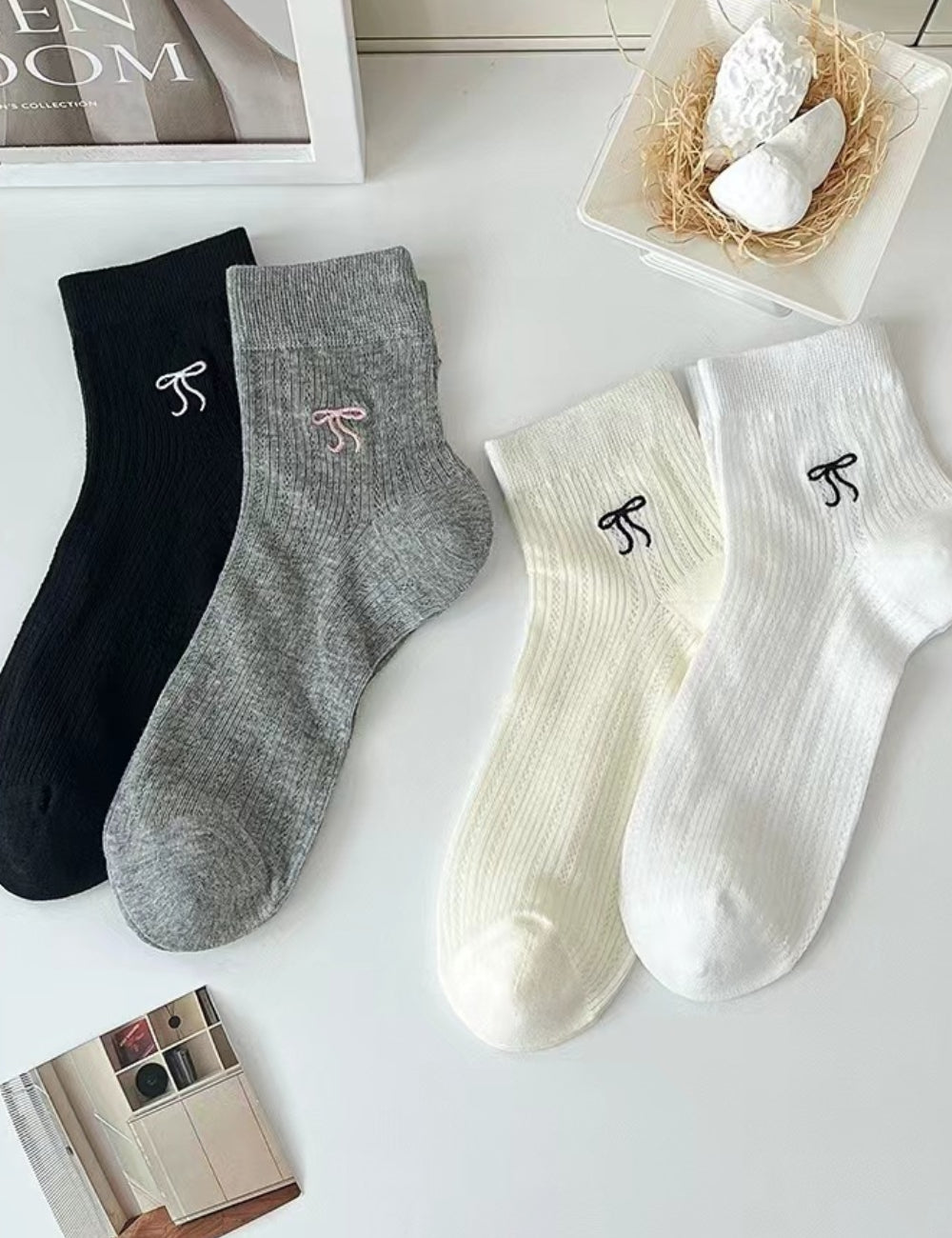 Ladies Tiny Bow Knit Everyday Boat Socks SKAS50001