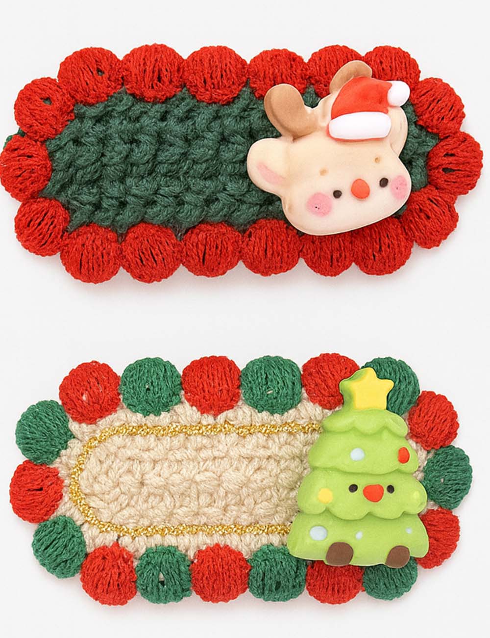 Ladies Christmas Reindeer Tree Crochet Knit 2 Pack Hair Clip