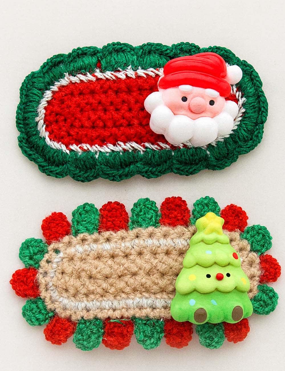 Ladies Christmas Santa Tree Crochet Knit 2 Pack Hair Clip