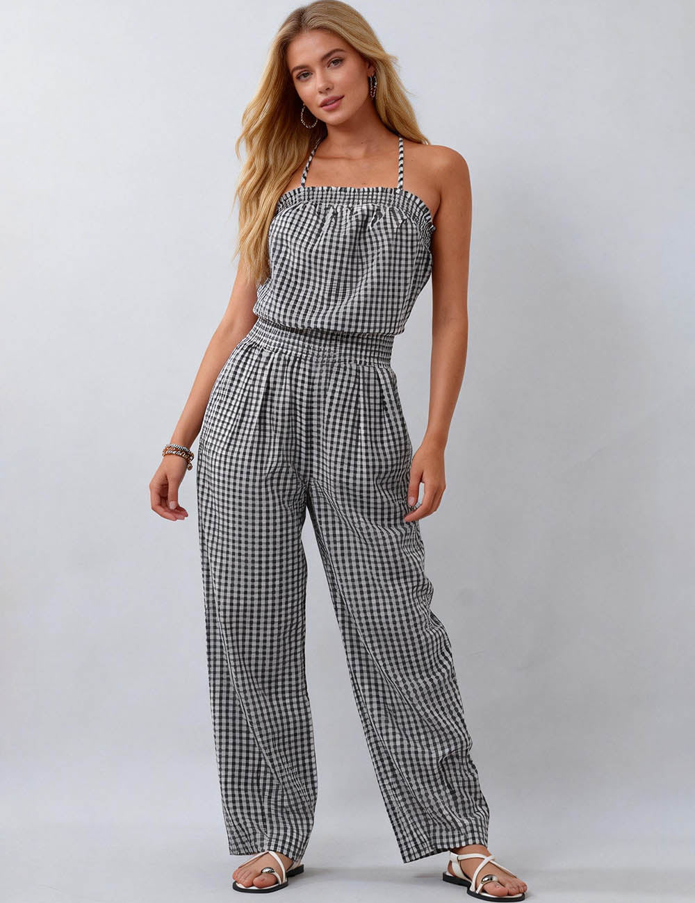 Ladies Solid Color Sleeveless Straight Leg Jumpsuit
