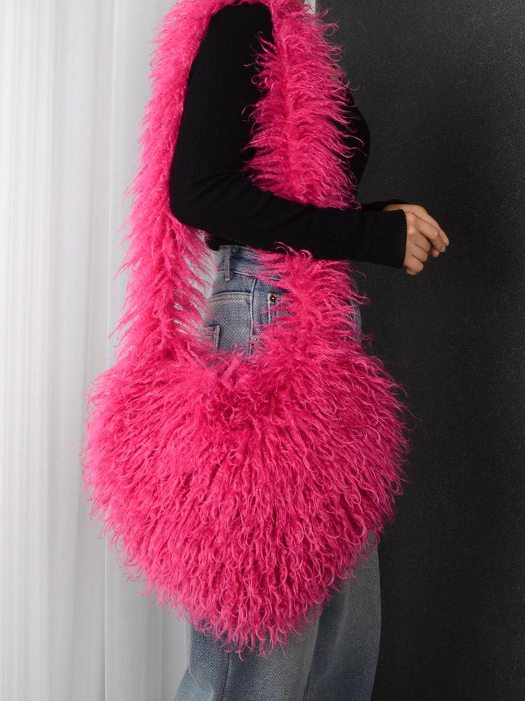 Ladies Y2K Heart-Shaped Plush Bag SKAB4091