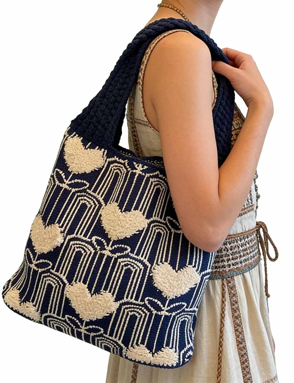Ladies Valentineās Heart Crochet Large Capacity Shoulder Tote Bag