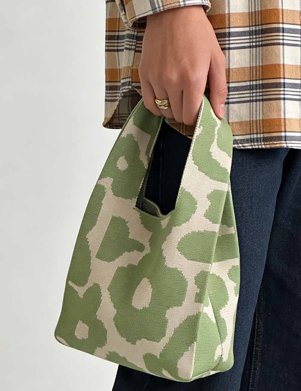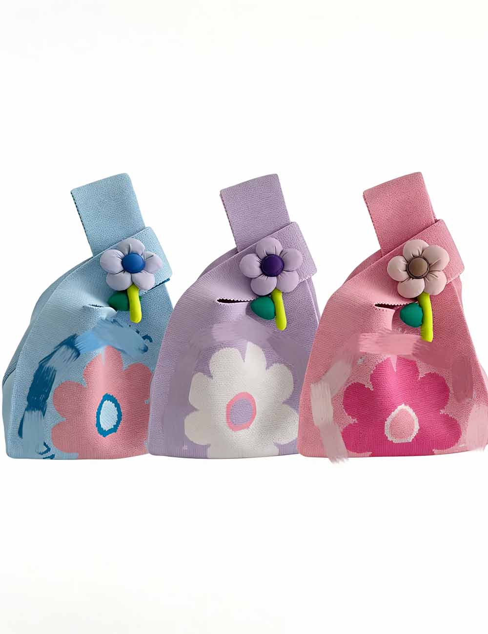 Ladies Floral Pattern Knit Color Block Mini Hand Bag