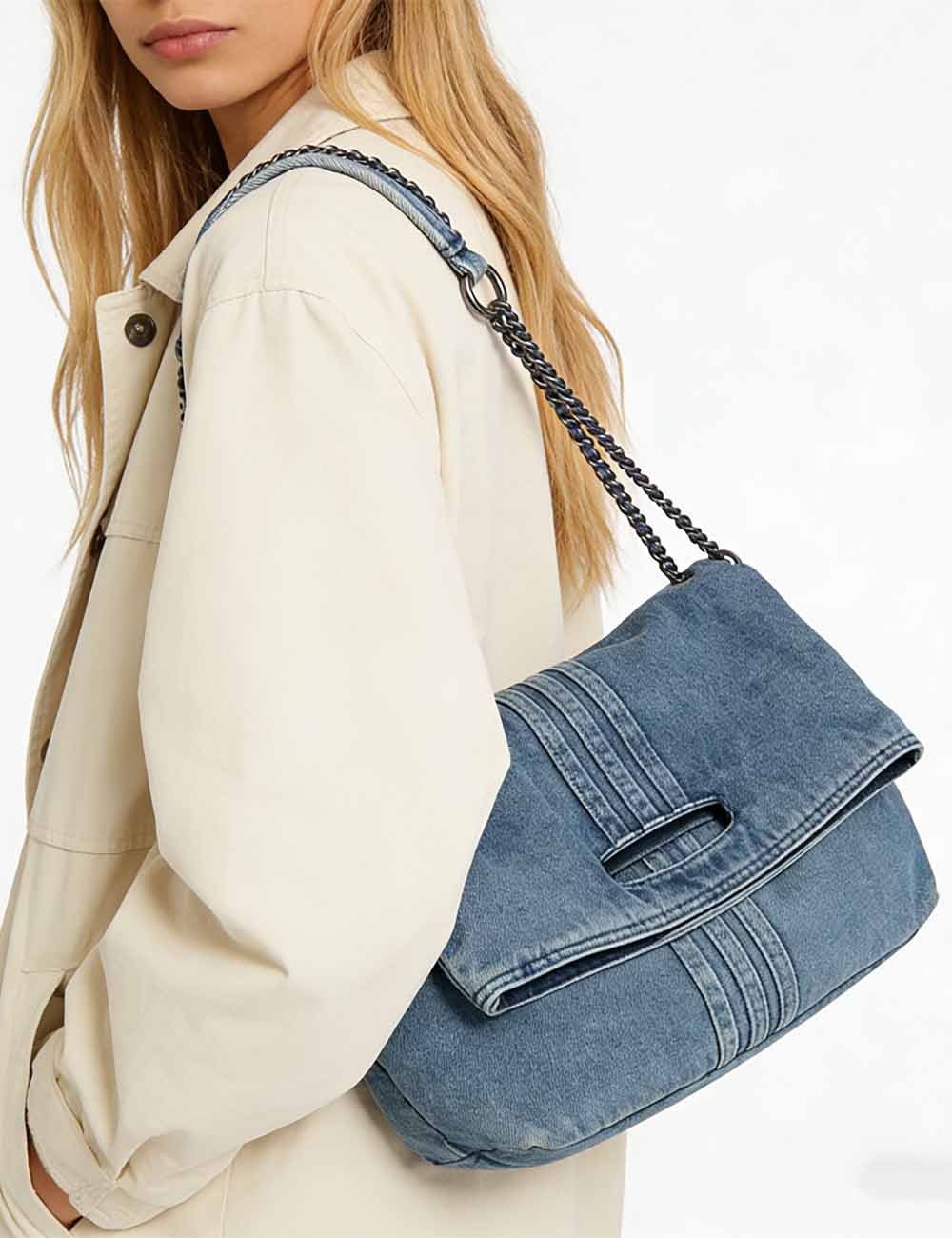 Ladies Fashion Suede Flap Button Shoulder Tote Bag