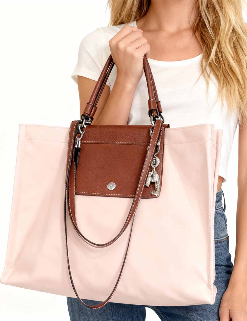Ladies Simple Color Block Large Capacity Handle Shoulder Bag