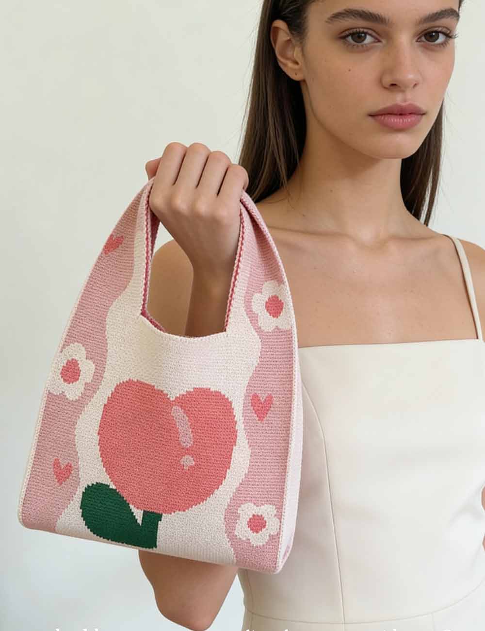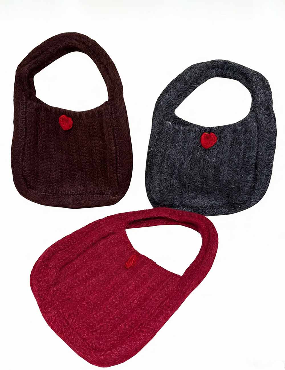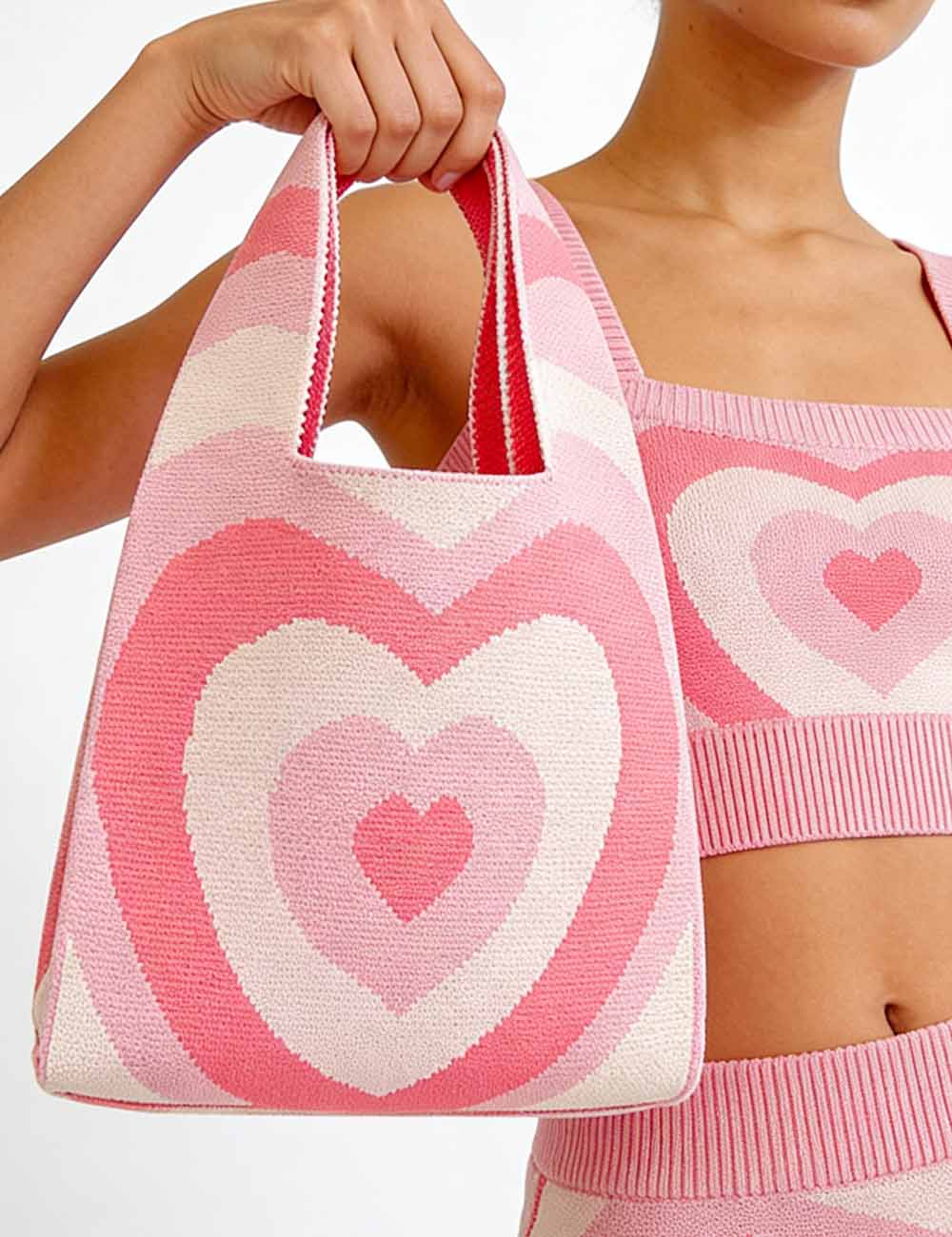 Ladies Valentine's Heart Knit Handbag Mini Tote Bag