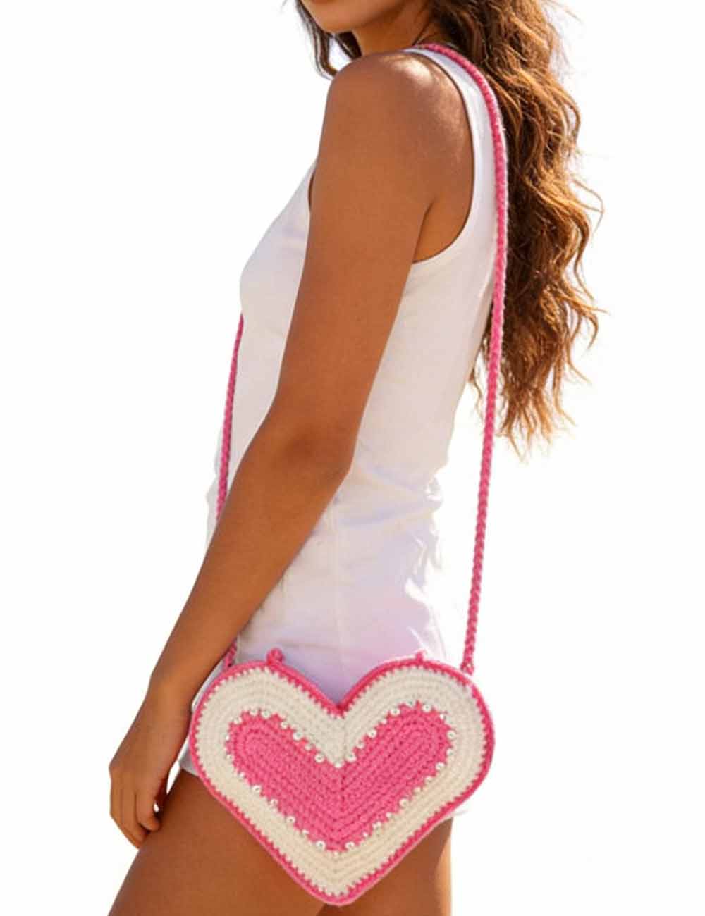 Ladies Valentineās Heart-Shaped Pearl Crochet Crossbody Bag