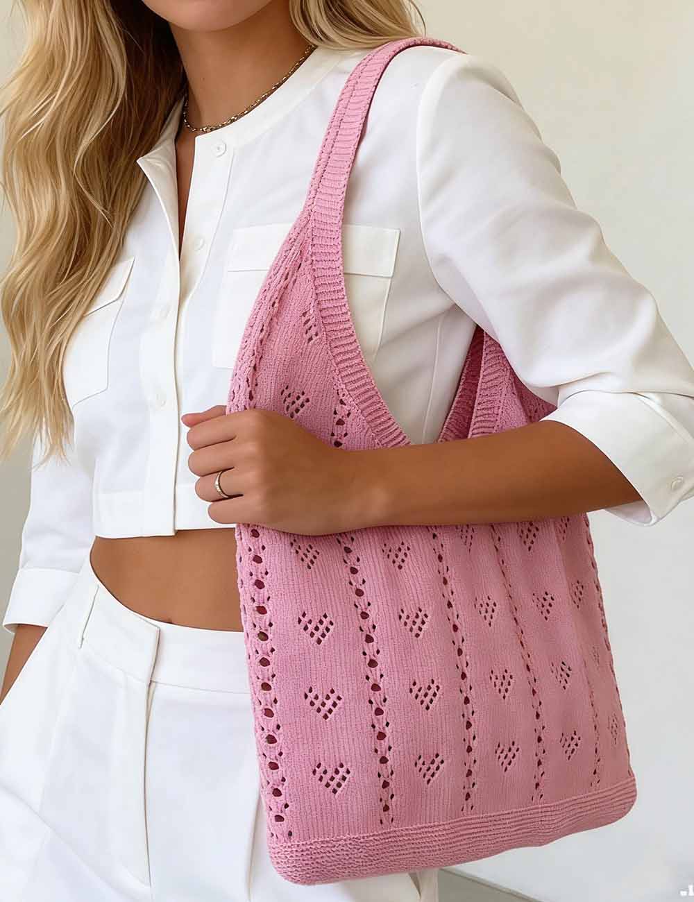 Ladies Valentineās Heart Knit Hollow Out Shoulder Tote Bag